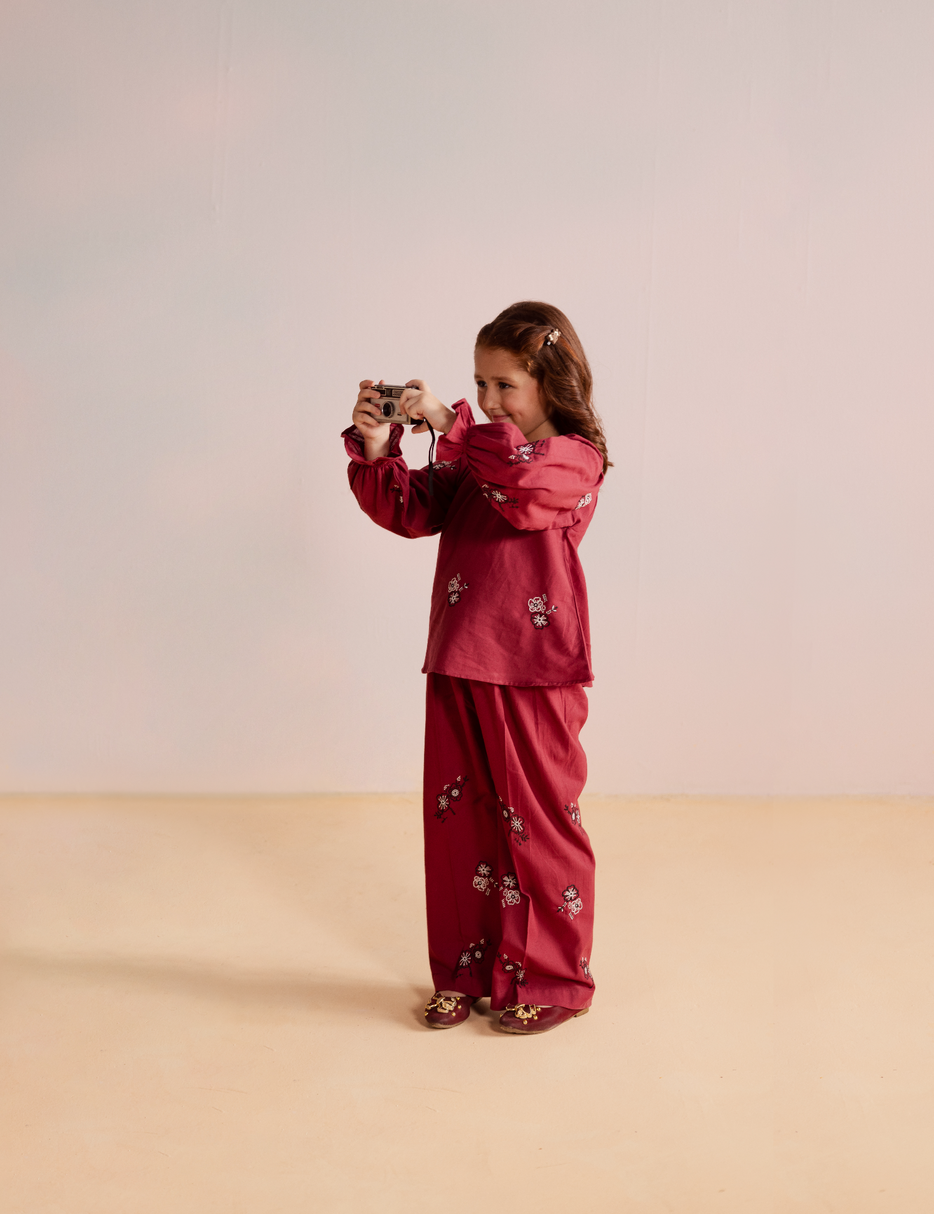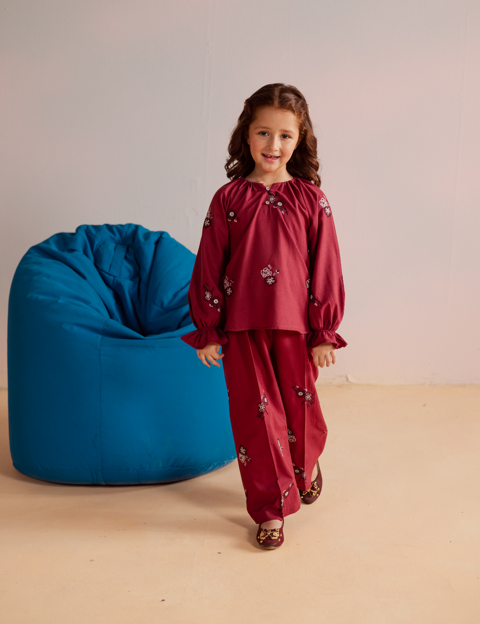 Add a touch of charm to your girl’s outfit with this beautiful floral embroidered top. Crafted from soft, breathable fabric, it features delicate embroidery that brings a lovely, feminine flair. Designed for comfort and style, this top pairs perfectly with jeans, skirts, or shorts — ideal for casual days, family gatherings, or festive occasions.