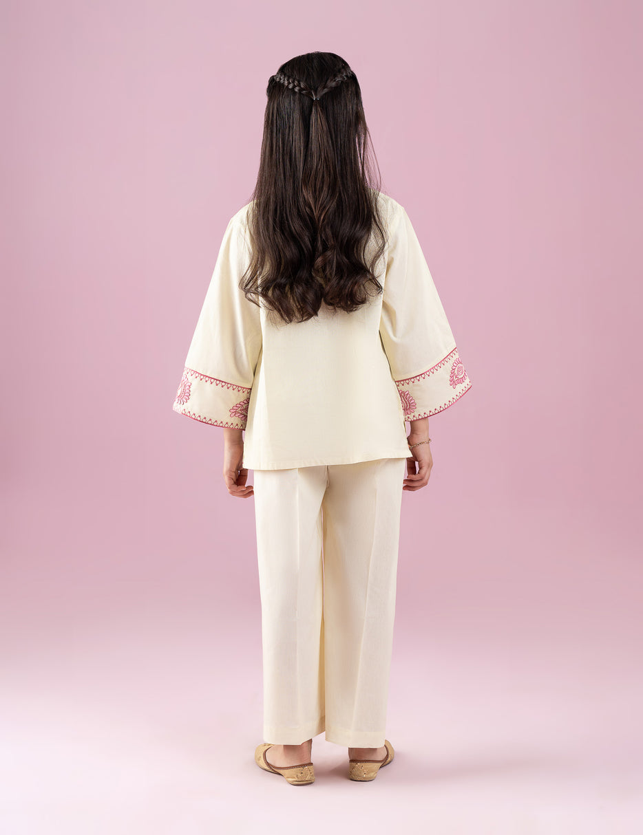 Add a touch of elegance to her wardrobe with this 2 Piece Embroidered Suit for Girls. Featuring beautifully detailed embroidery on the top and paired with comfortable matching trousers, this outfit blends traditional charm with everyday comfort. Crafted from soft, breathable fabric, it’s perfect for festive celebrations, family gatherings, or special occasions where she can shine in style.