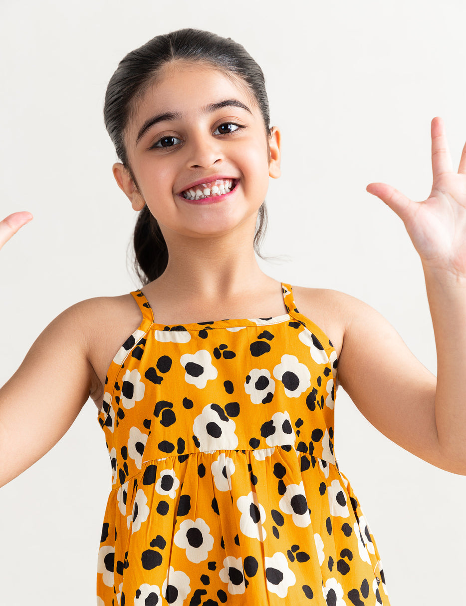 Bring a touch of charm to her wardrobe with this Floral Printed Dress for Little Girls. Designed with a delightful allover floral pattern, this dress combines style and comfort effortlessly. Made from soft, breathable fabric with a relaxed fit, it’s perfect for playdates, family outings, or casual summer days. A cute and versatile choice for everyday wear.