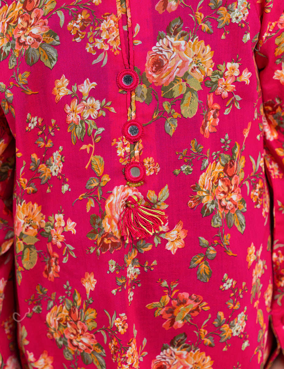 Gorgeous fabric is designed with allover floral print. Paired with matching trouser. Must have this for summer season.