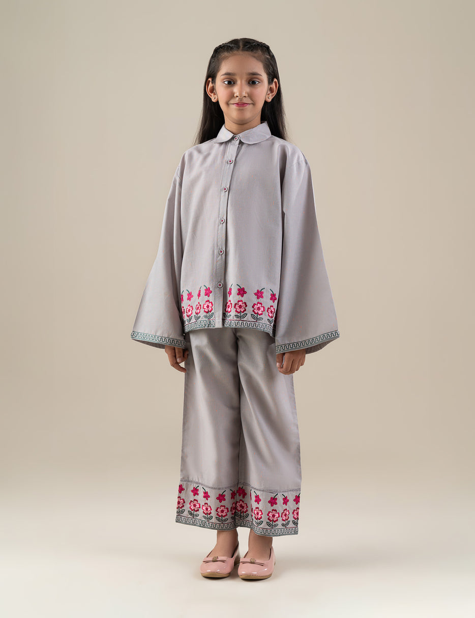 Let her shine in this beautiful 2 Piece Floral Embroidered Suit for Girls, designed to bring elegance and comfort together. The top features delicate floral embroidery that adds a graceful and charming touch, while the matching trousers complete the coordinated look perfectly. Crafted from soft, breathable fabric, this suit ensures all-day comfort and easy movement. The neat stitching and fine detailing make it an ideal choice for festive occasions, family gatherings, and special events. A lovely blend of tradition and style — perfect for your little fashion star!