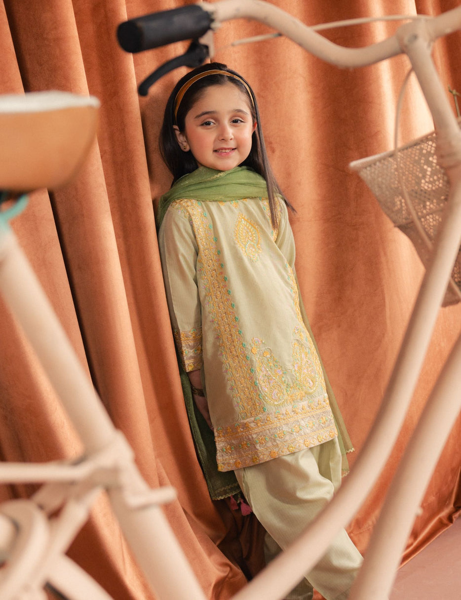 Gorgeous fabric crafted with love! This ethnic set features delicate gold & silver tilla embroidery, paired with matching shalwar. A must-have ensemble for the upcoming summer festive season!