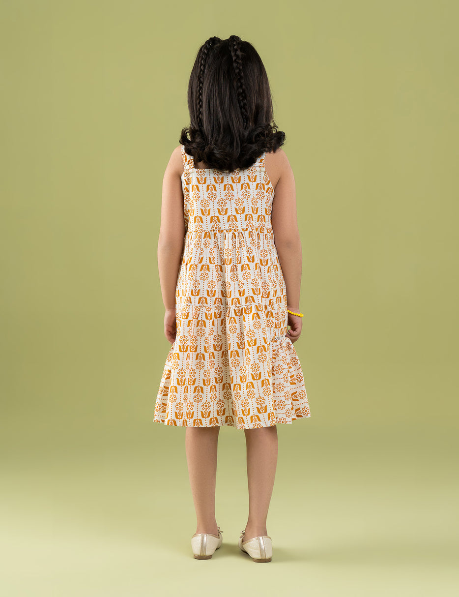 Add a pop of color to her wardrobe with this beautiful floral printed dress for little girls. Designed with a charming all-over floral pattern, this dress offers a soft, breathable feel and a comfortable fit for everyday wear. The easy silhouette allows free movement, making it perfect for playtime, outings, or special occasions. Stylish yet practical, this floral dress is a delightful choice for sunny days and fun-filled moments.
