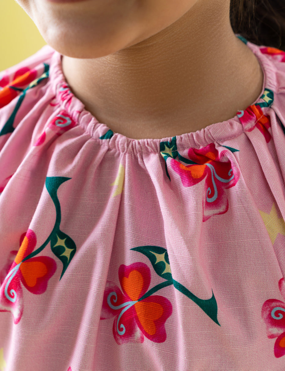 Brighten up her wardrobe with this charming floral printed dress for girls. Designed with a soft, breathable fabric, it offers all-day comfort while showcasing a beautiful all-over floral print for a fresh and playful look. The relaxed fit allows easy movement, making it perfect for casual wear, outings, or special occasions. Easy to style and delightful to wear, this dress is a lovely choice for every little fashionista.