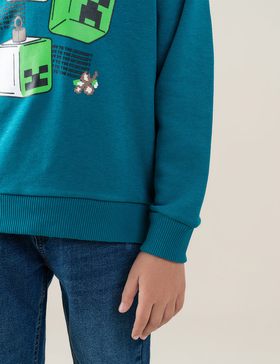Bring their favorite game to life with this cool Minecraft graphic sweatshirt for boys. Featuring bold, eye-catching Minecraft artwork, this cozy sweatshirt is made from soft and warm fabric for all-day comfort. Perfect for school, playtime, or casual outings, it pairs easily with jeans or joggers — a must-have for every young gamer’s wardrobe.