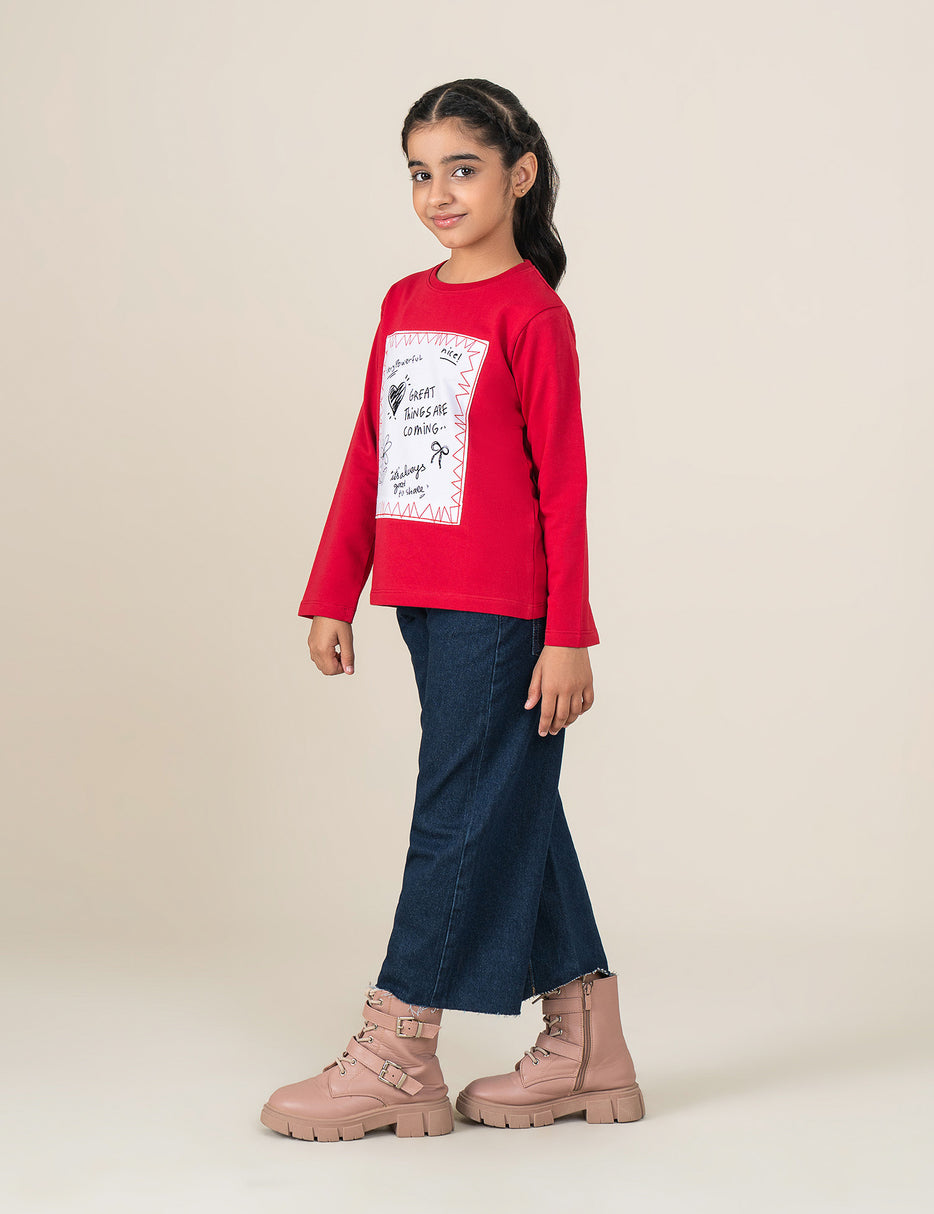 Brighten up her wardrobe with this stylish red long sleeve top, featuring a fun hand-drawn graphic print that spreads positivity with messages like “Great Things Are Coming” and “Very Powerful.” Crafted from soft, breathable fabric, this top combines comfort with creativity, perfect for school days or casual outings. Style 8560 is a feel-good essential for every young girl who loves a pop of personality in her outfit.