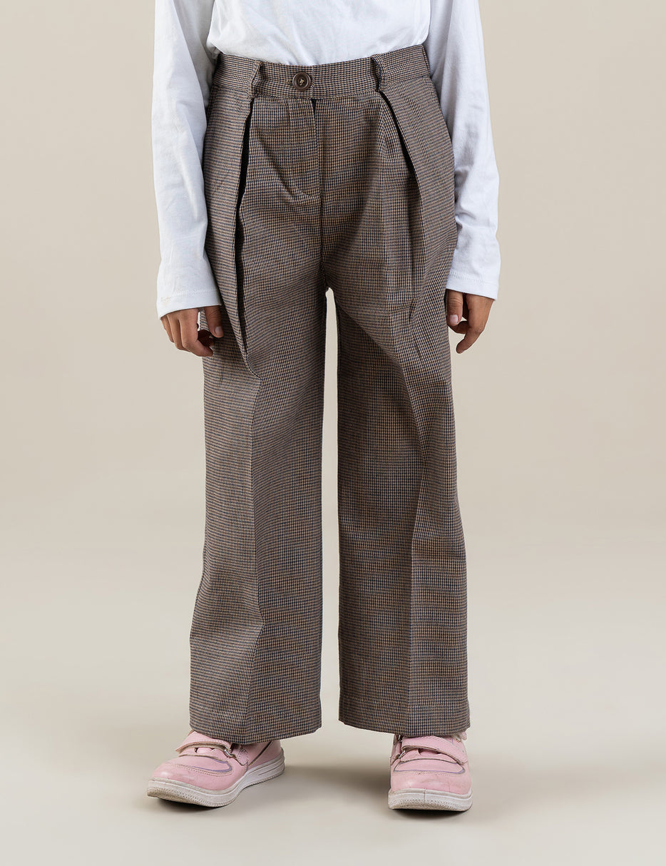 Trendy and elegant houndstooth pants for girls, featuring a classic black-and-white checkered pattern. Designed with an elastic waistband for a comfortable fit and made from soft, stretchable fabric. Perfect for casual outings, parties, or pairing with stylish tops for a chic, fashionable look.