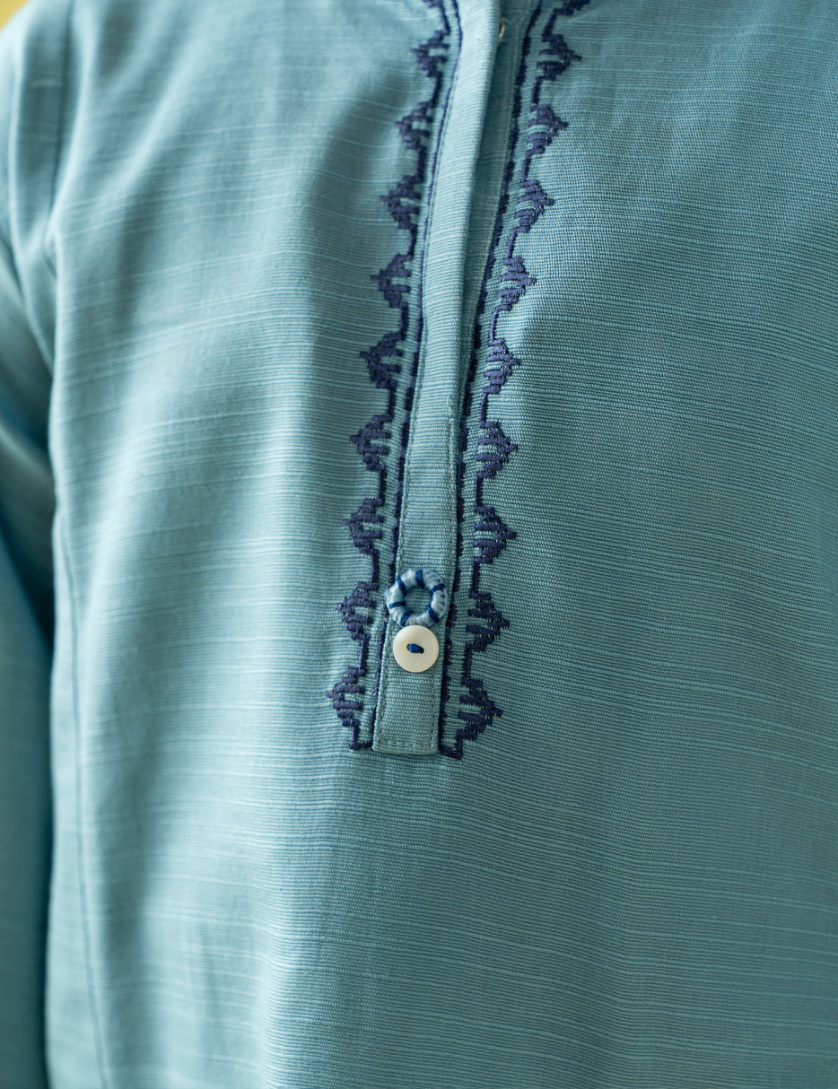 Gorgeous color fabric is designed with love, bold contemporary embroidery detail with stylish cutline. Paired with matching printed trouser. Must have this for summer season.