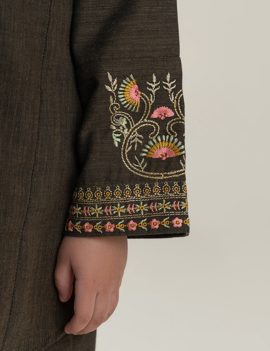 Gorgeous color fabric is designed with love and multi color embroidery detail. Paired with matching trouser. Must have this for festive season.