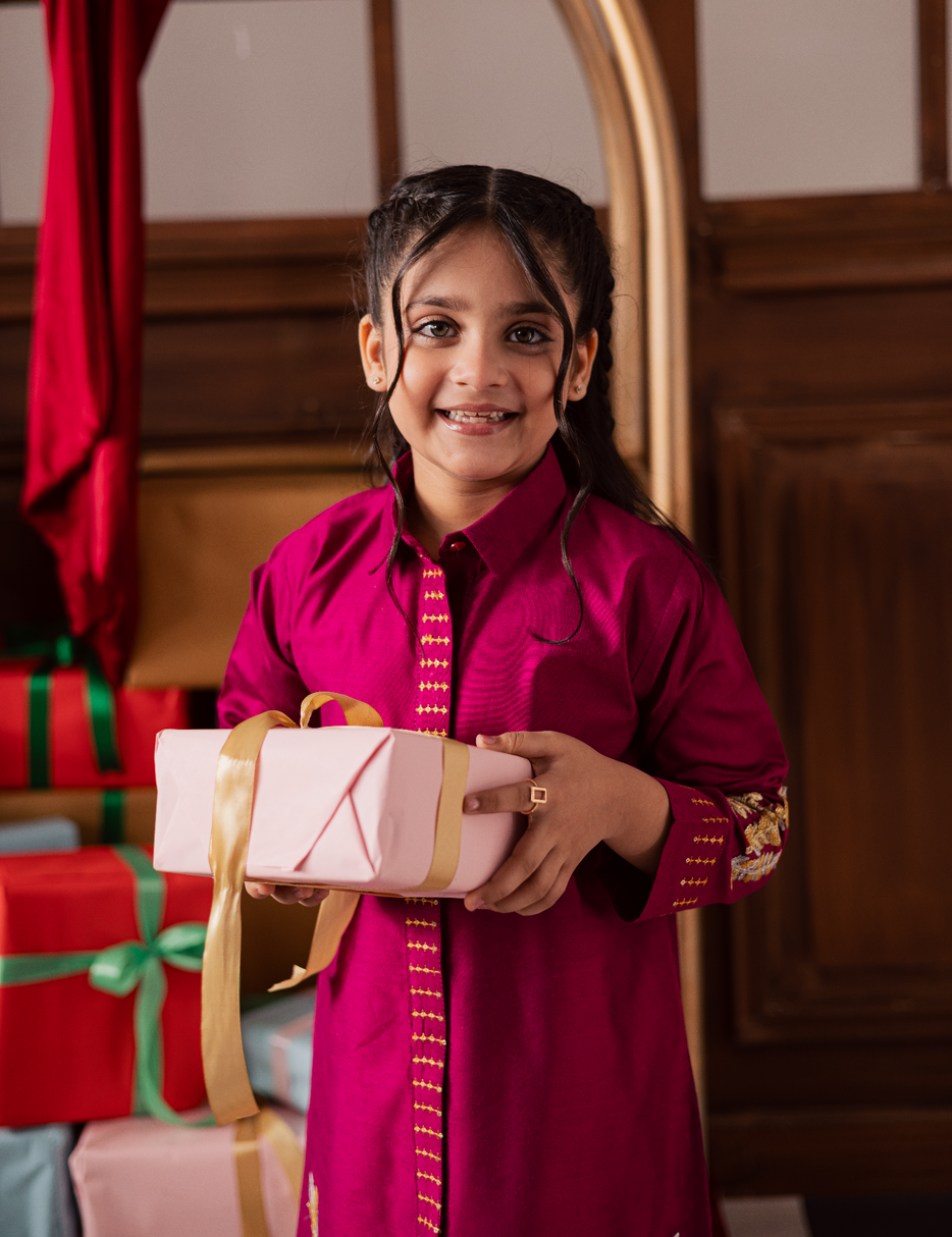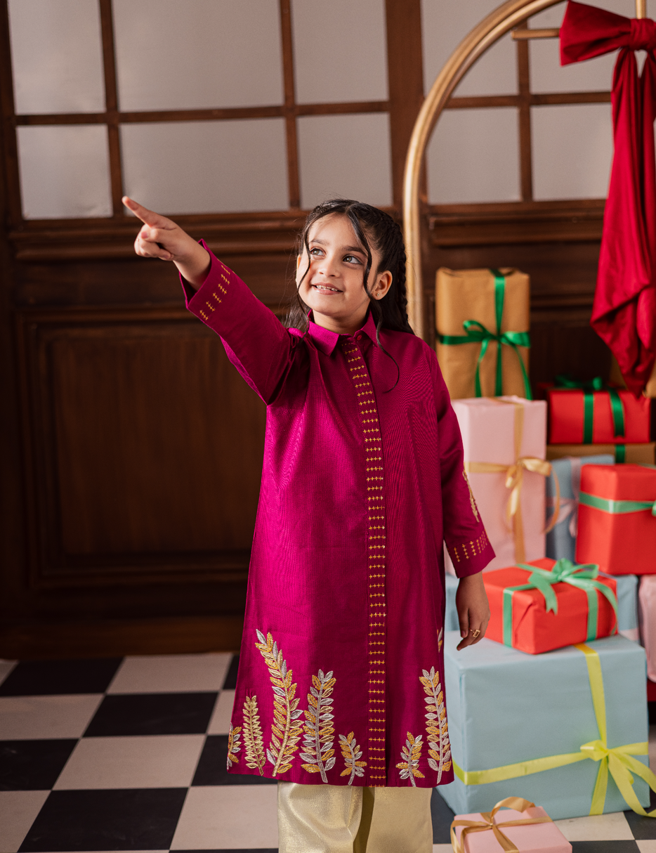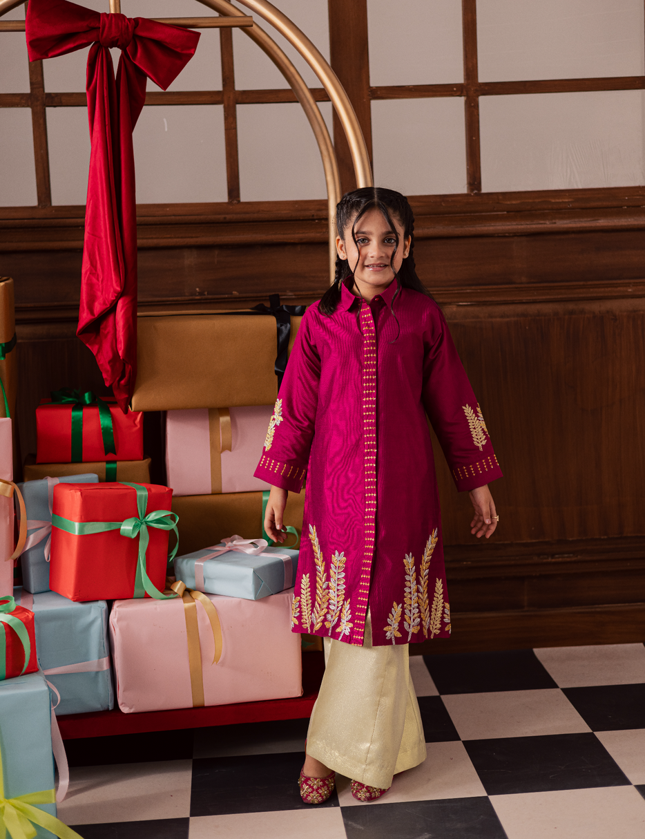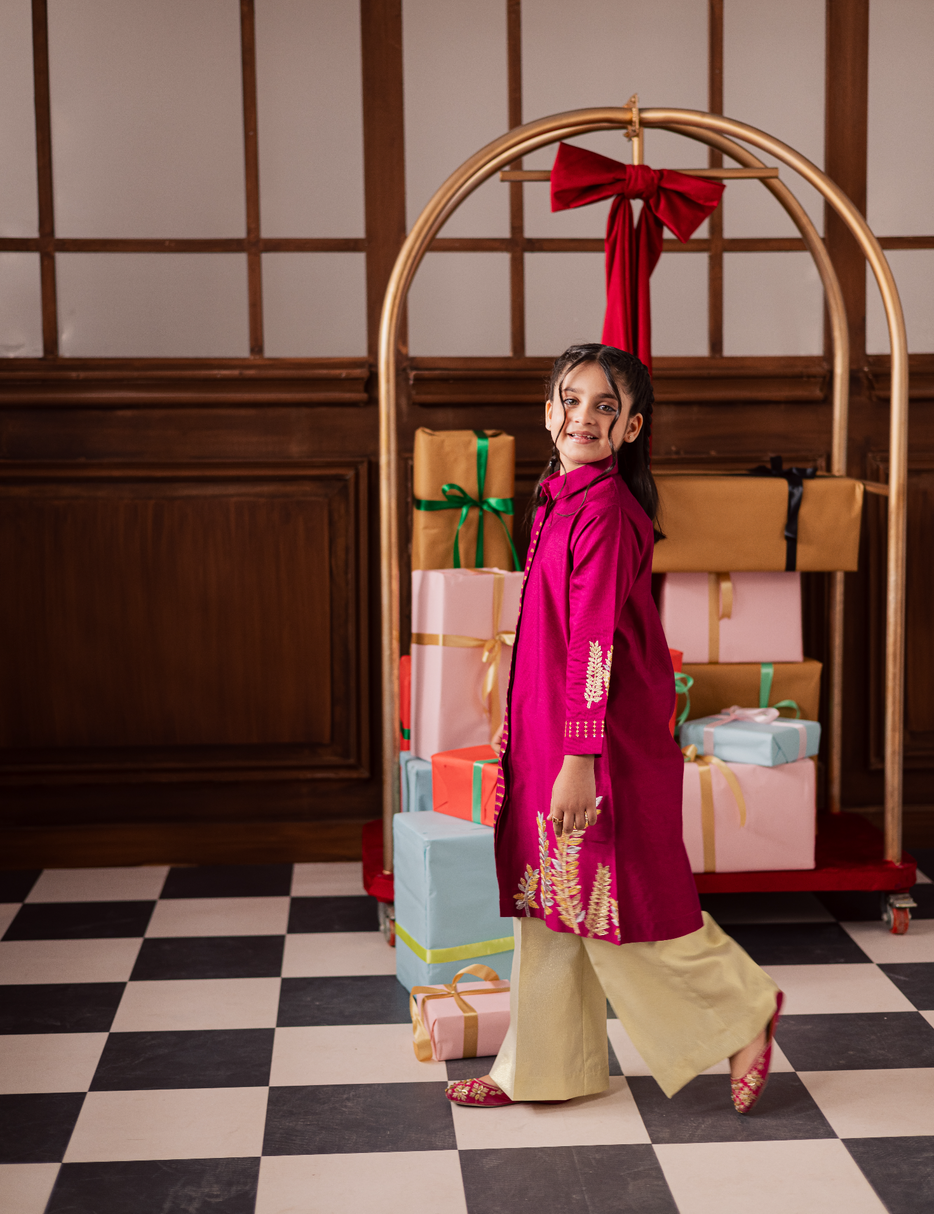 Gorgeous color fabric is designed with love, ethnic tilla and sitara embroidery detail. Paired with gold trouser. Must have this for winter festive season.