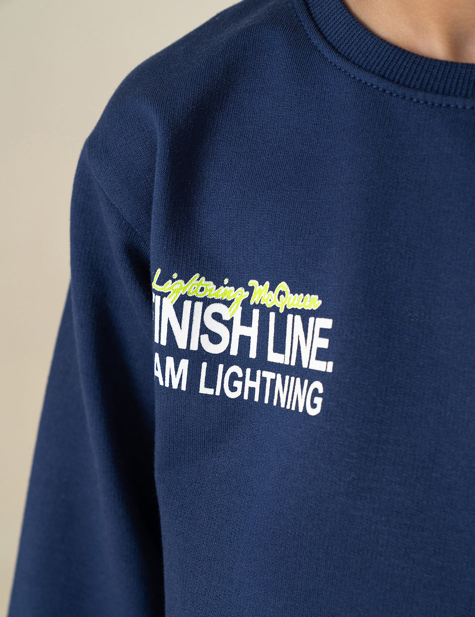Rev up your little boy’s wardrobe with this cool navy blue sweatshirt featuring Disney Pixar's Lightning McQueen from Cars. Made from soft, comfortable fabric, this sweatshirt showcases a fun "Finish Line – I Am Lightning" graphic and a bold McQueen print. Perfect for everyday wear or cozy outings, it adds a playful touch while keeping your child warm and stylish. A must-have for young Cars fans!