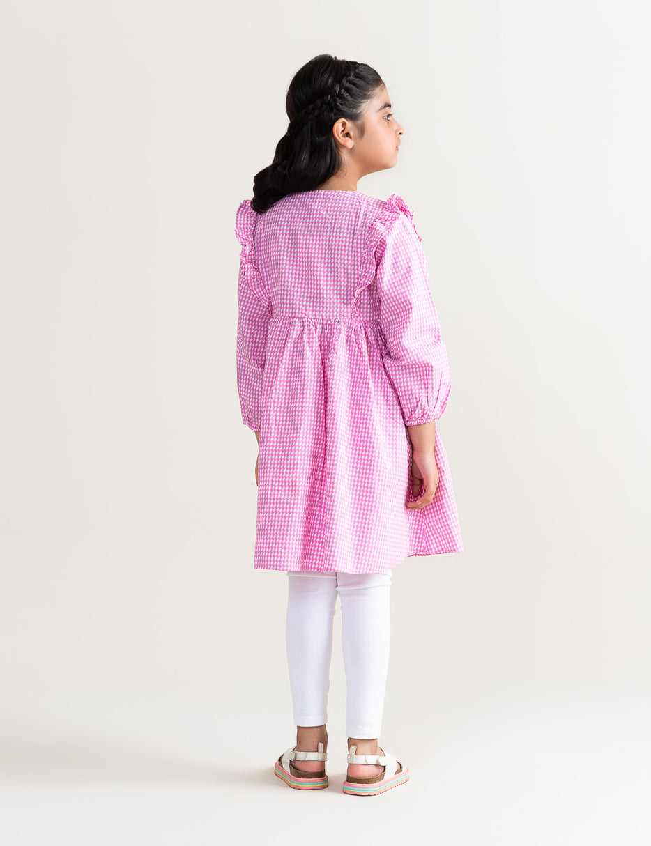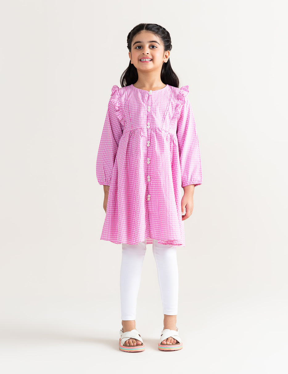 Charming and classic, this gingham dress features long sleeves, a front button-down design, and cute ruffle details on the shoulders. Made from soft, breathable fabric, it offers all-day comfort while maintaining a stylish, vintage-inspired look. Perfect for casual wear, family outings, or special occasions, this dress combines sweetness and simplicity in one adorable outfit.