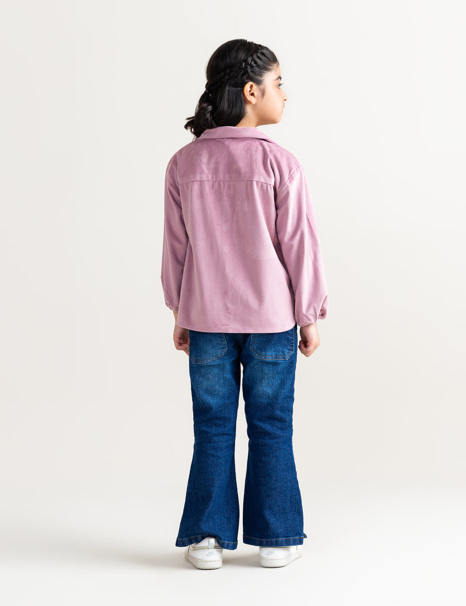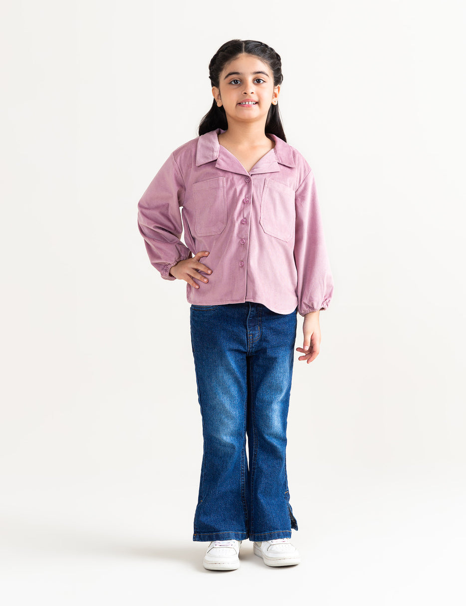 Elevate your casual wardrobe with this stylish mauve pink button-down shirt. Crafted from a soft, suede-like fabric, it features a relaxed fit with a wide collar, front button closure, and two roomy chest pockets. The full sleeves with elastic cuffs add a gentle puff for a feminine touch, making it ideal for both everyday wear and relaxed outings. Pair it with jeans or trousers for an effortlessly chic look.