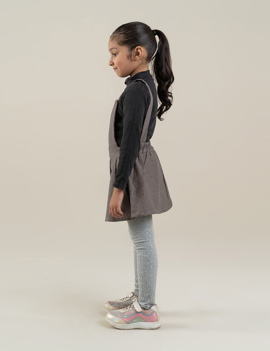 This stylish houndstooth dungaree is a timeless addition to your little girl’s wardrobe. Designed with a classic brown houndstooth pattern, pleated skirt, and adjustable shoulder straps, it combines charm and comfort effortlessly. Made from soft, durable fabric, it’s perfect for pairing with t-shirts or sweaters for school, playdates, or family outings.