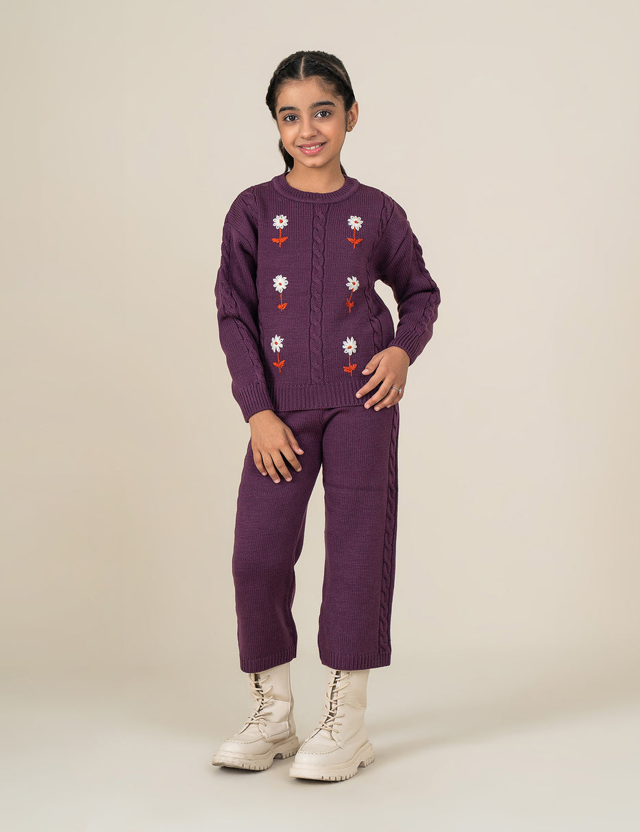 Add a touch of charm to her winter wardrobe with this Floral Embroidered Knitted Sweater for Girls. Crafted from soft, cozy knit fabric, it features delicate white flower embroidery on a classic grey background. The cable-knit pattern adds texture and warmth, making it perfect for chilly days. Ideal for pairing with jeans, skirts, or leggings for a cute and comfy look.