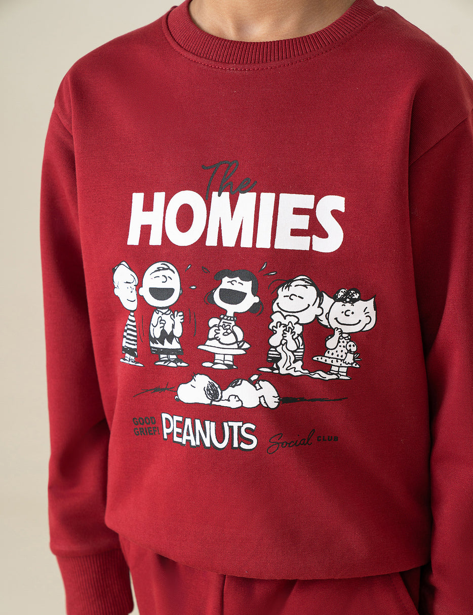 Bring fun and comfort to your little boy’s wardrobe with this adorable 2-piece Peanuts Homies suit. The cozy sweatshirt features playful Peanuts characters on the front, paired with matching jogger pants for a coordinated look. Made from soft, breathable cotton fabric, this outfit is perfect for everyday wear, playtime, or lounging in style.