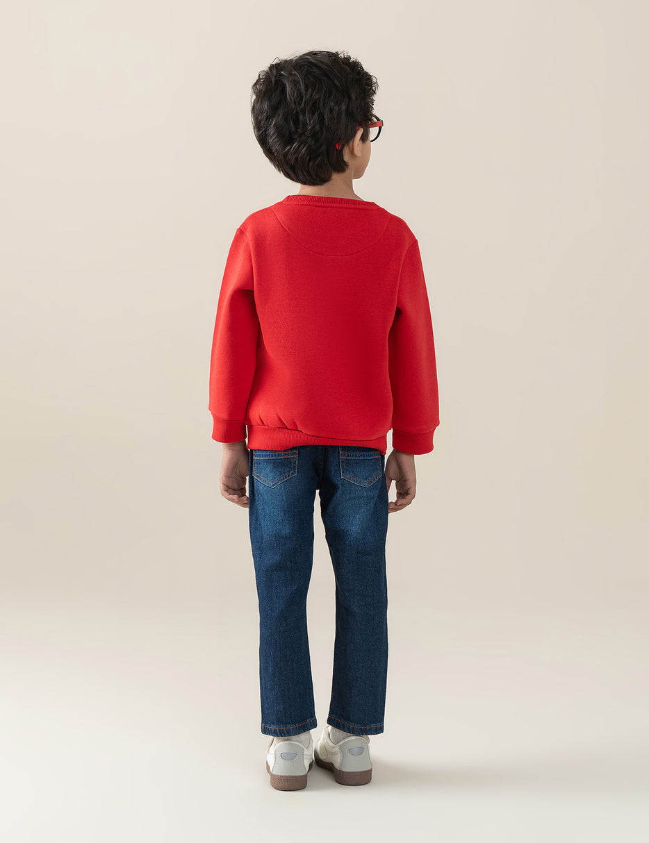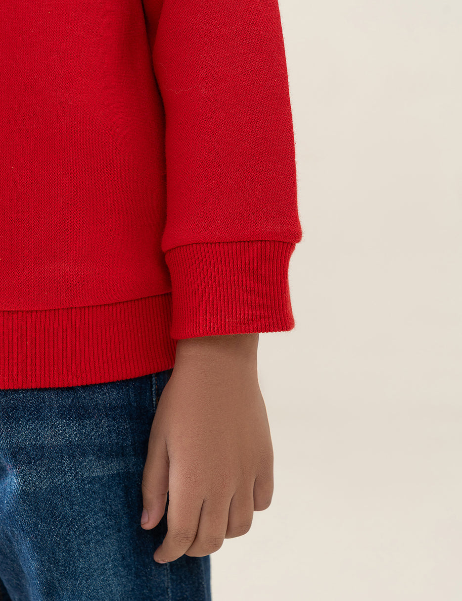 Cozy, colorful, and full of fun—this red “Stay United” sweatshirt is perfect for little boys who love playful character designs. Made from soft, warm fabric, it features a cheerful graphic of popular animated characters on the chest, bringing a bright and friendly touch to everyday outfits. The ribbed cuffs, collar, and hem provide a snug fit, while the comfortable material makes it ideal for school, playtime, or casual outings. Durable and easy to wear, this sweatshirt adds warmth and style to any little boy’s wardrobe.