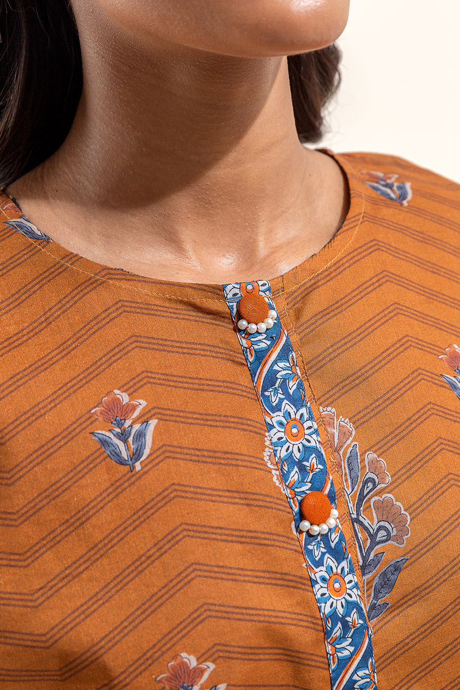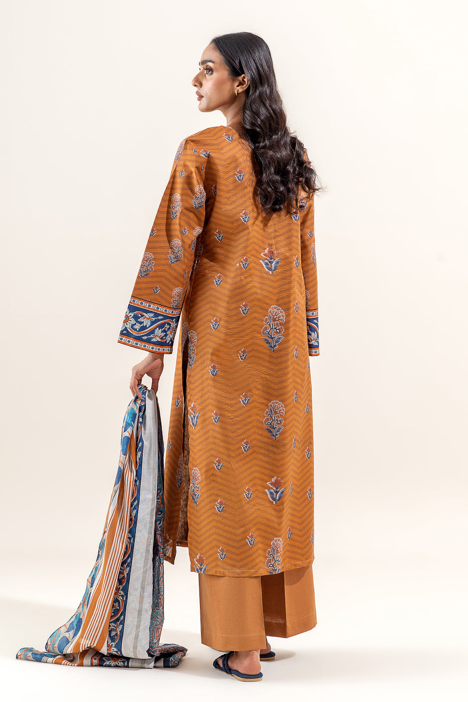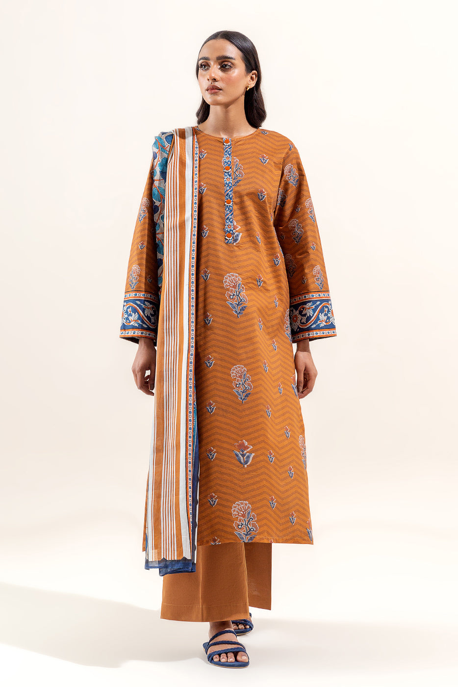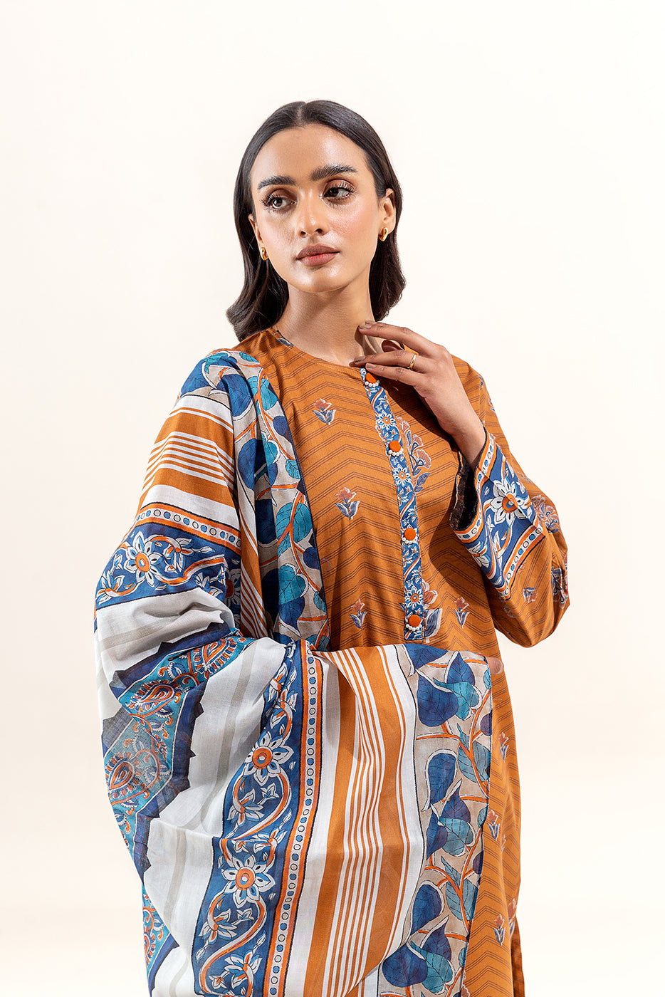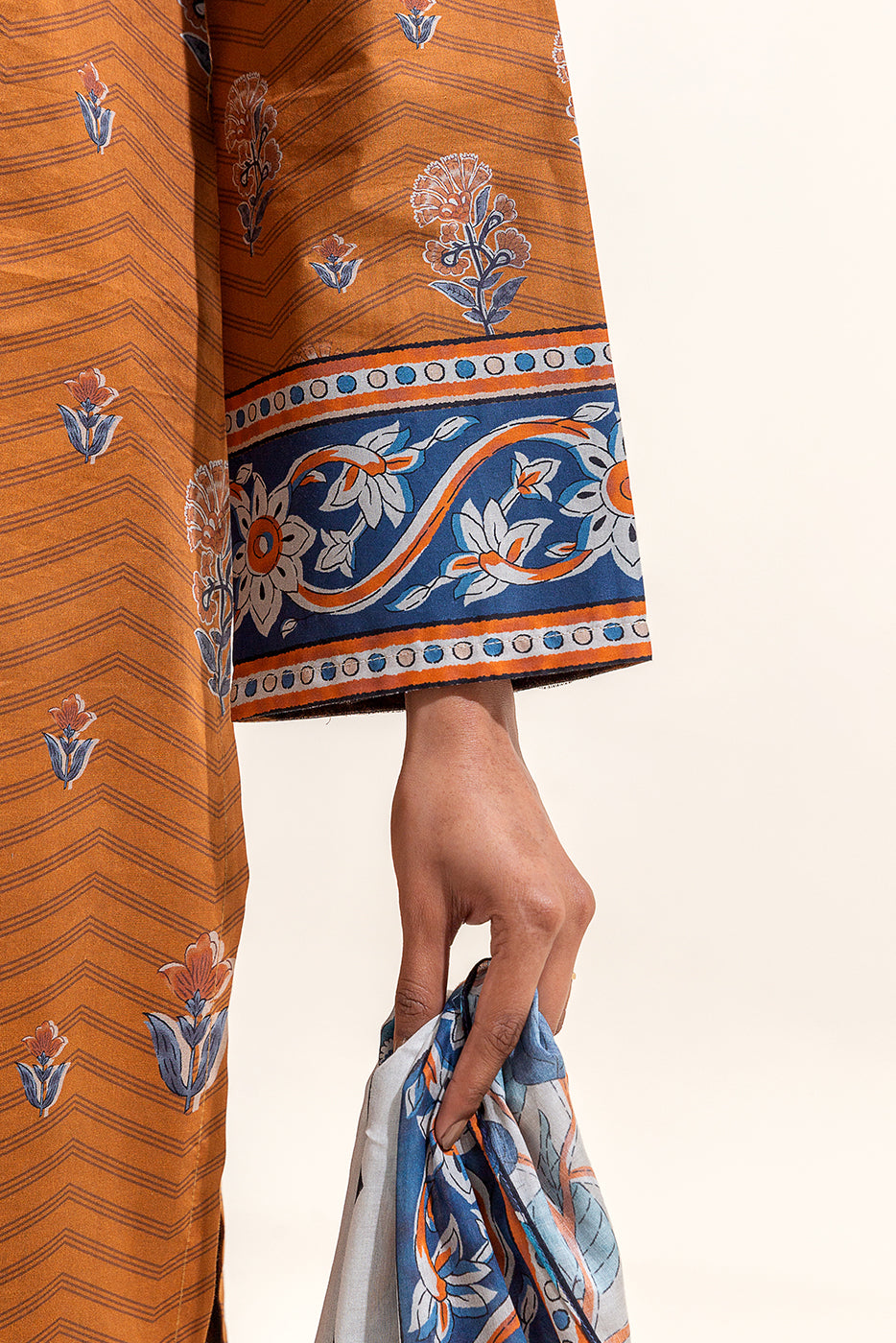 3 PIECE PRINTED LAWN SUIT-GOLDEN AMBER (UNSTITCHED)