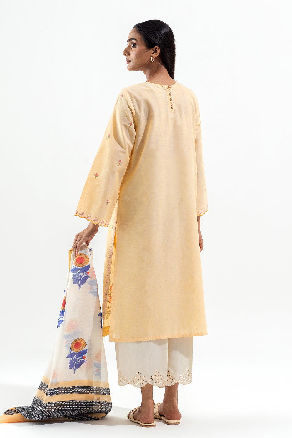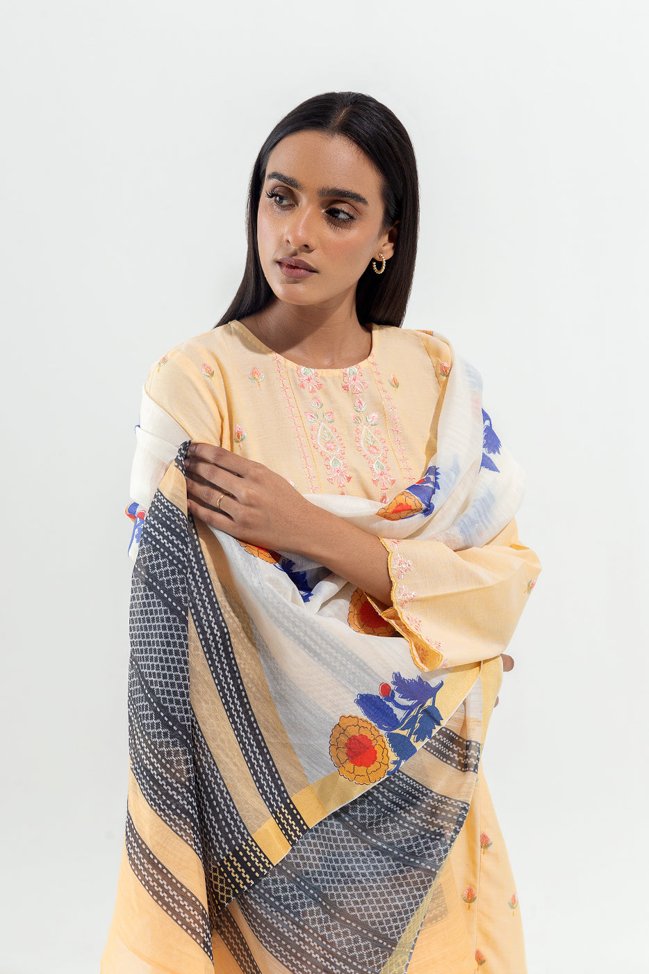 - Description: Basic Embroidered Two Piece Set Having Shirt With A Round Neckline With Pearl Buttons On The Back, Paired With A Digital Print Duppata.