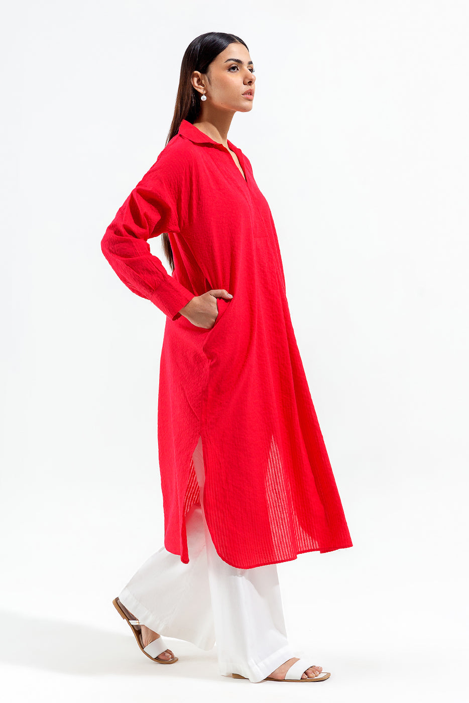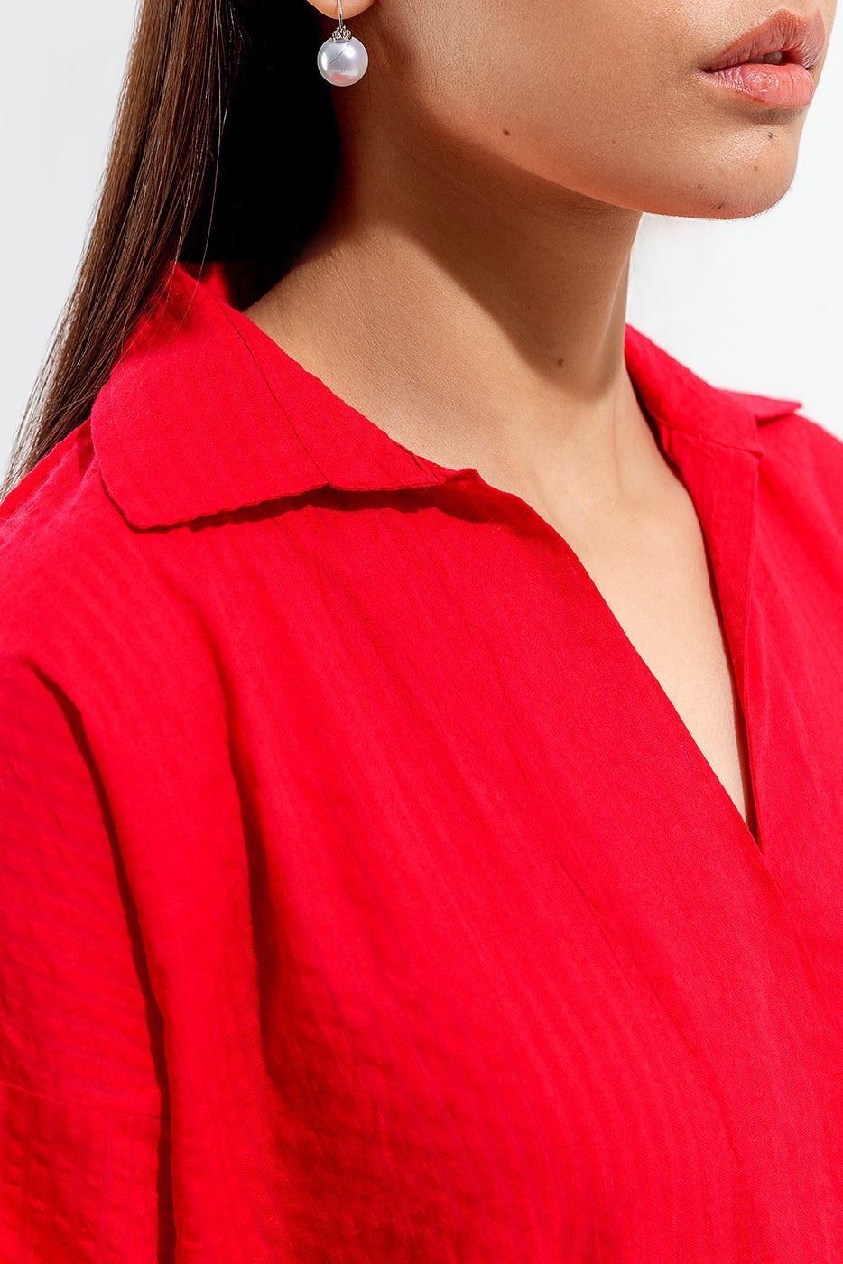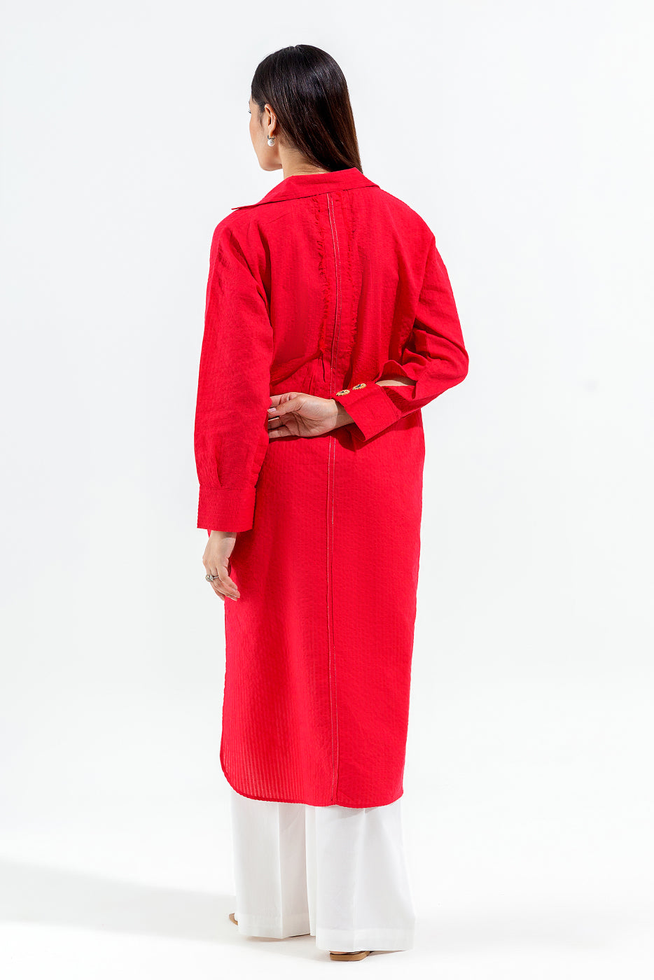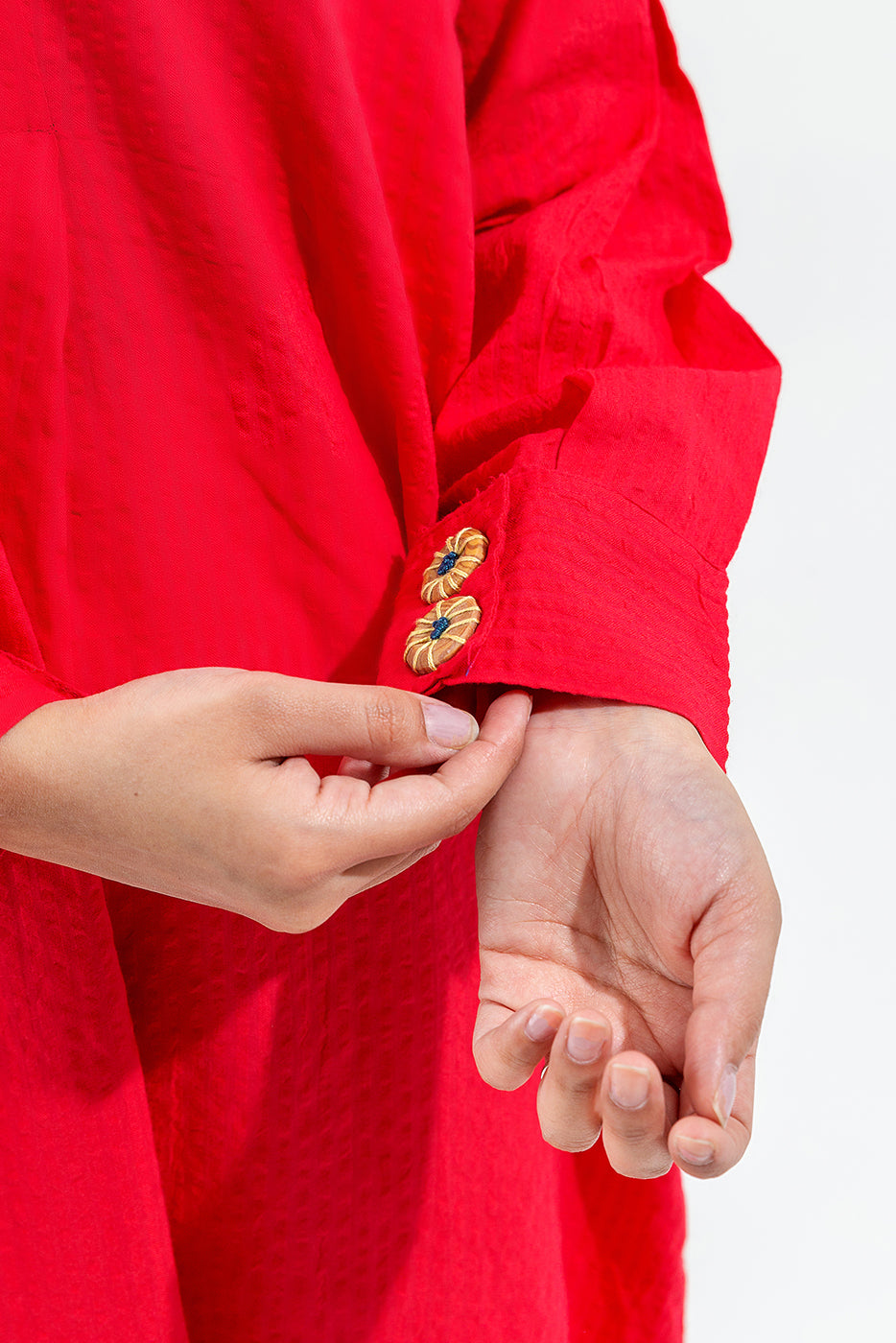 - Description: Long Shirt Collar Tunic With Cuff Detail On Sleeves.