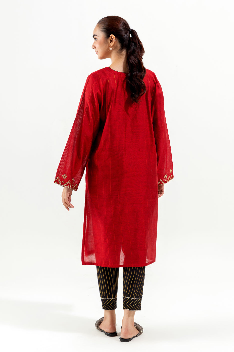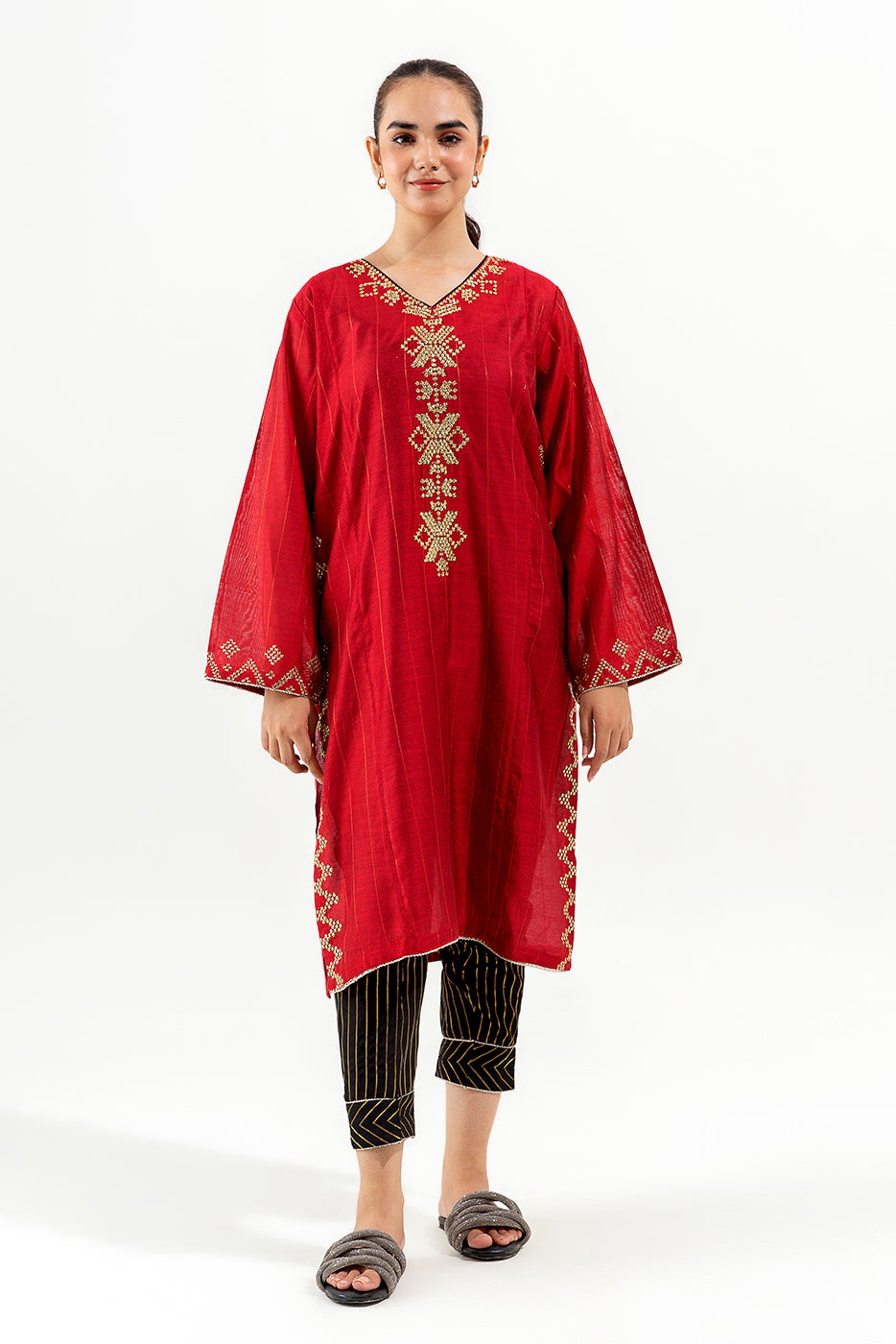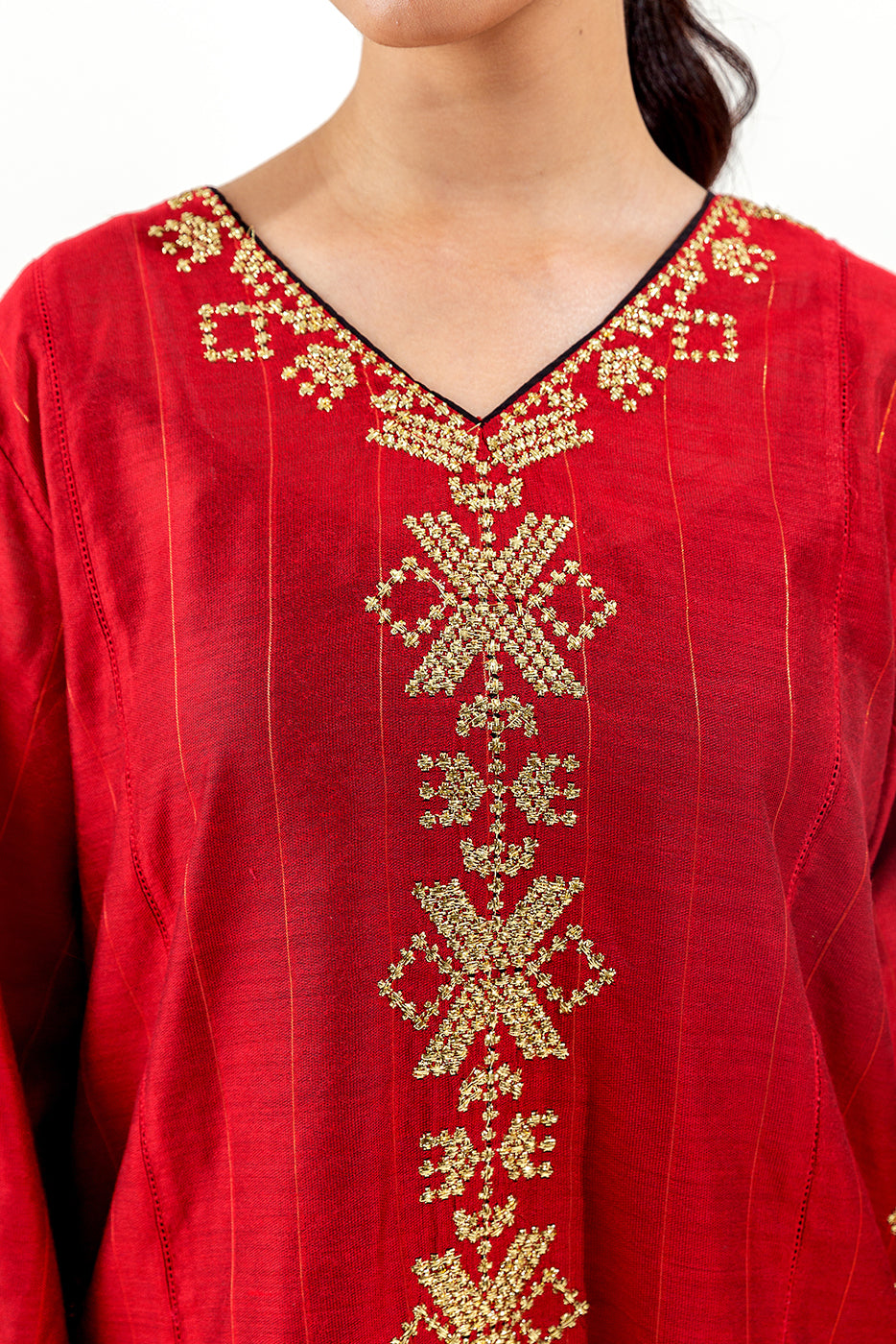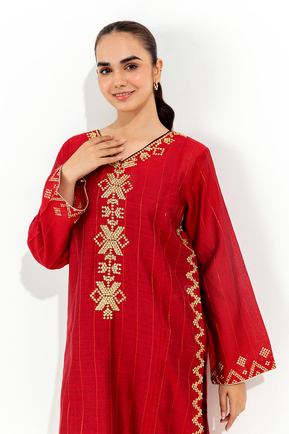 - Description: Embroidered Shirt Paired With Contrast Trouser.