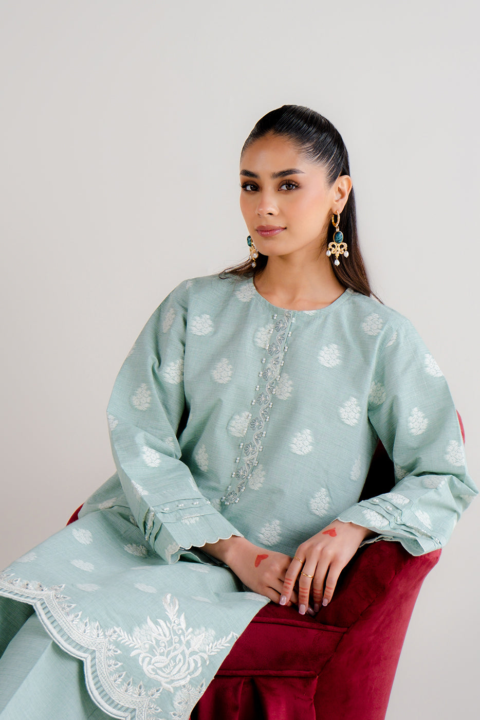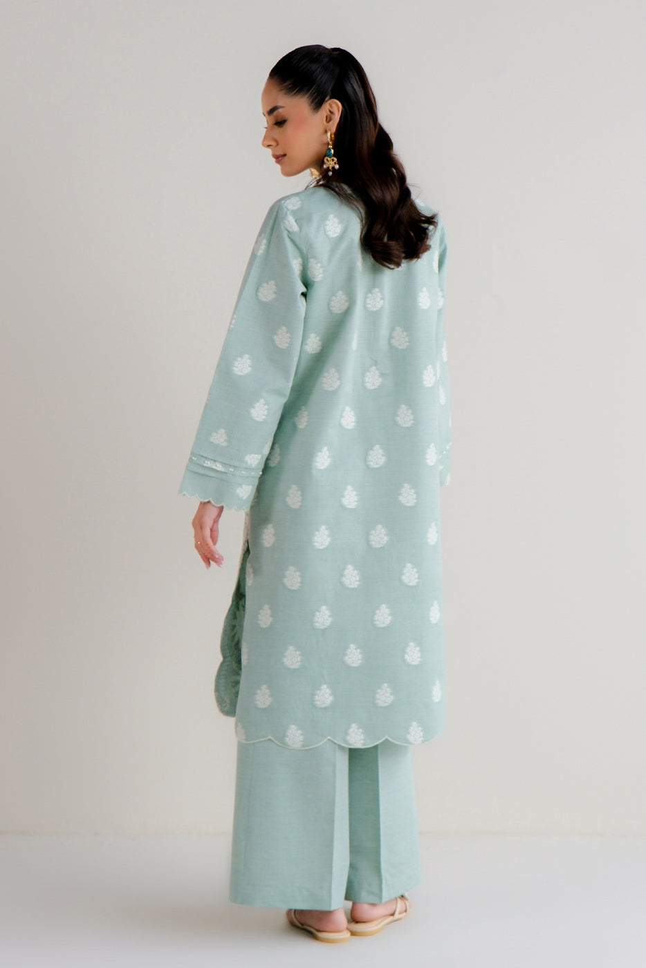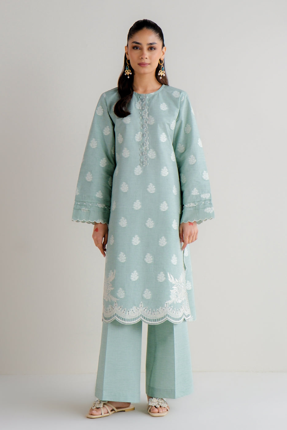 2 PIECE EMBROIDERED TWO TONE JACQUARD SUIT-MISTY MINT (UNSTITCHED)