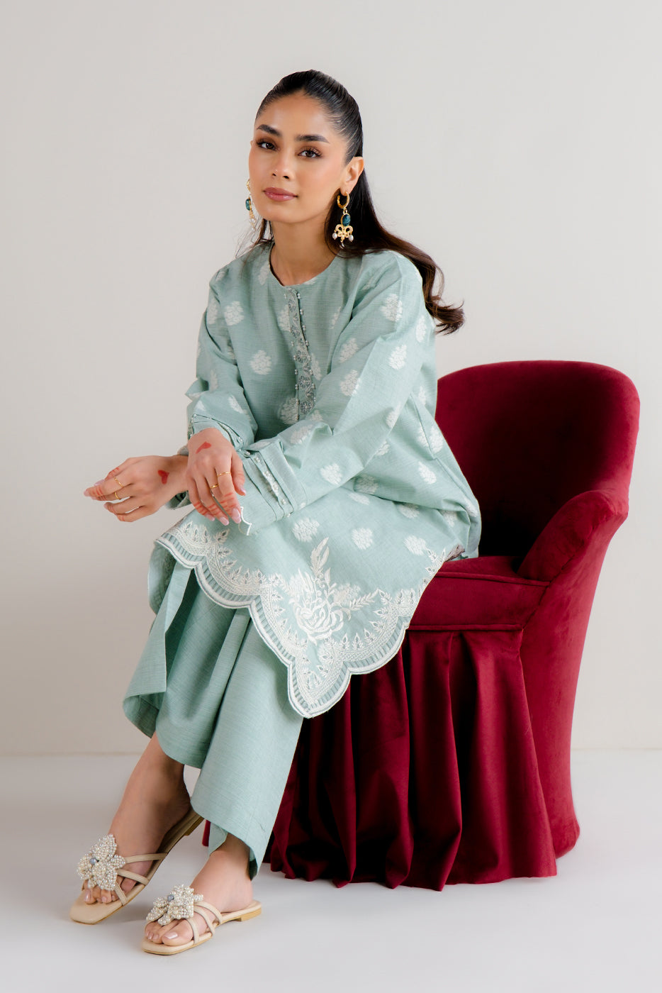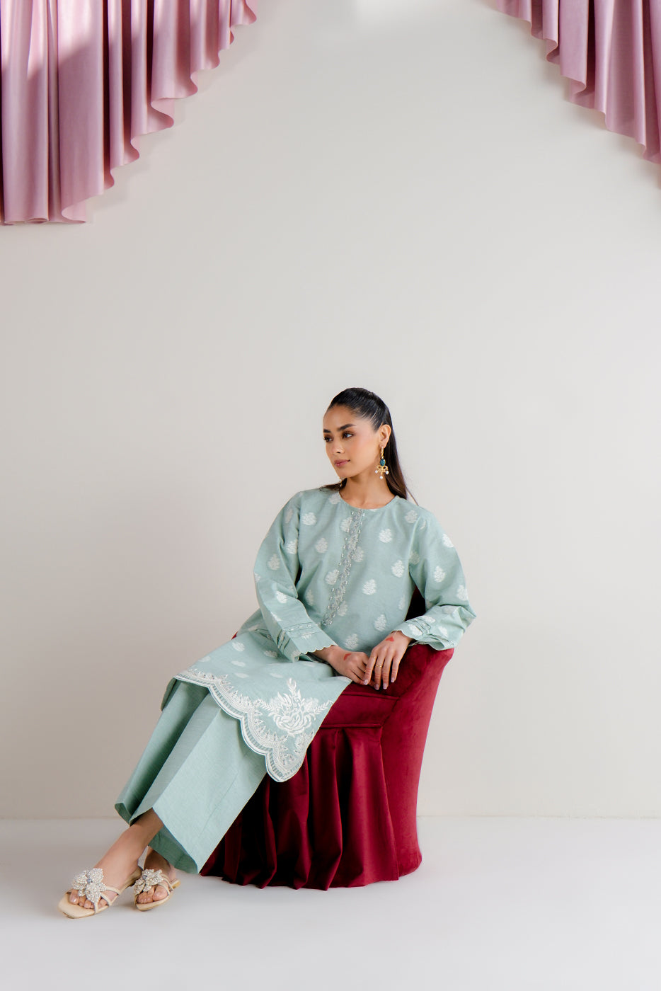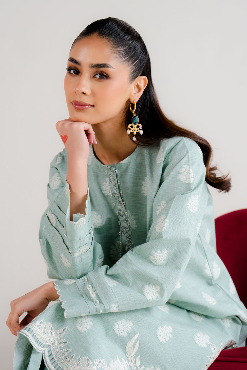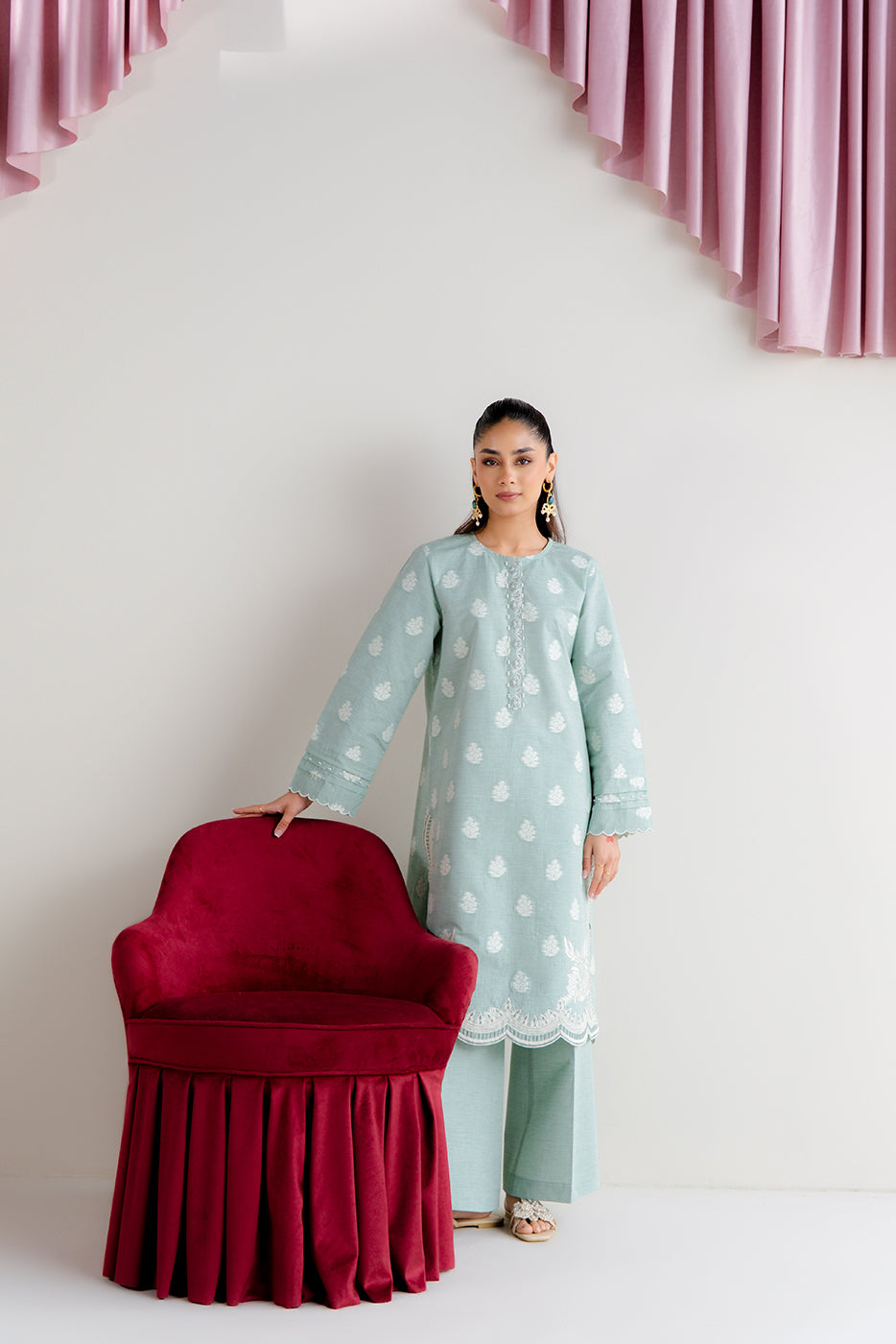 2 PIECE EMBROIDERED TWO TONE JACQUARD SUIT-MISTY MINT (UNSTITCHED)
