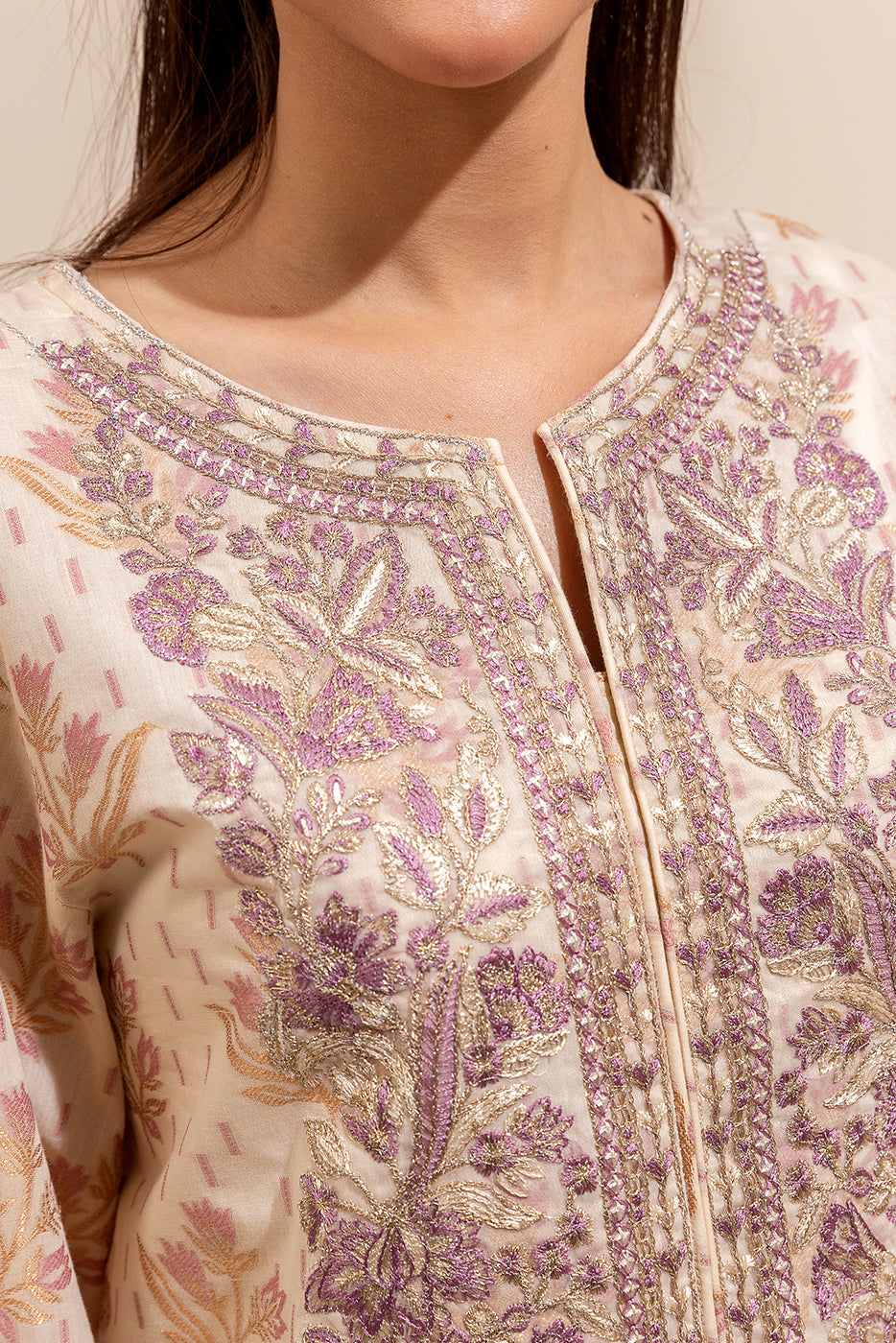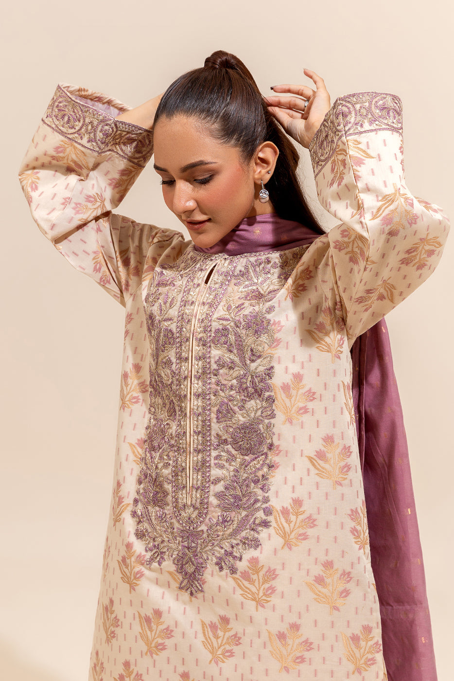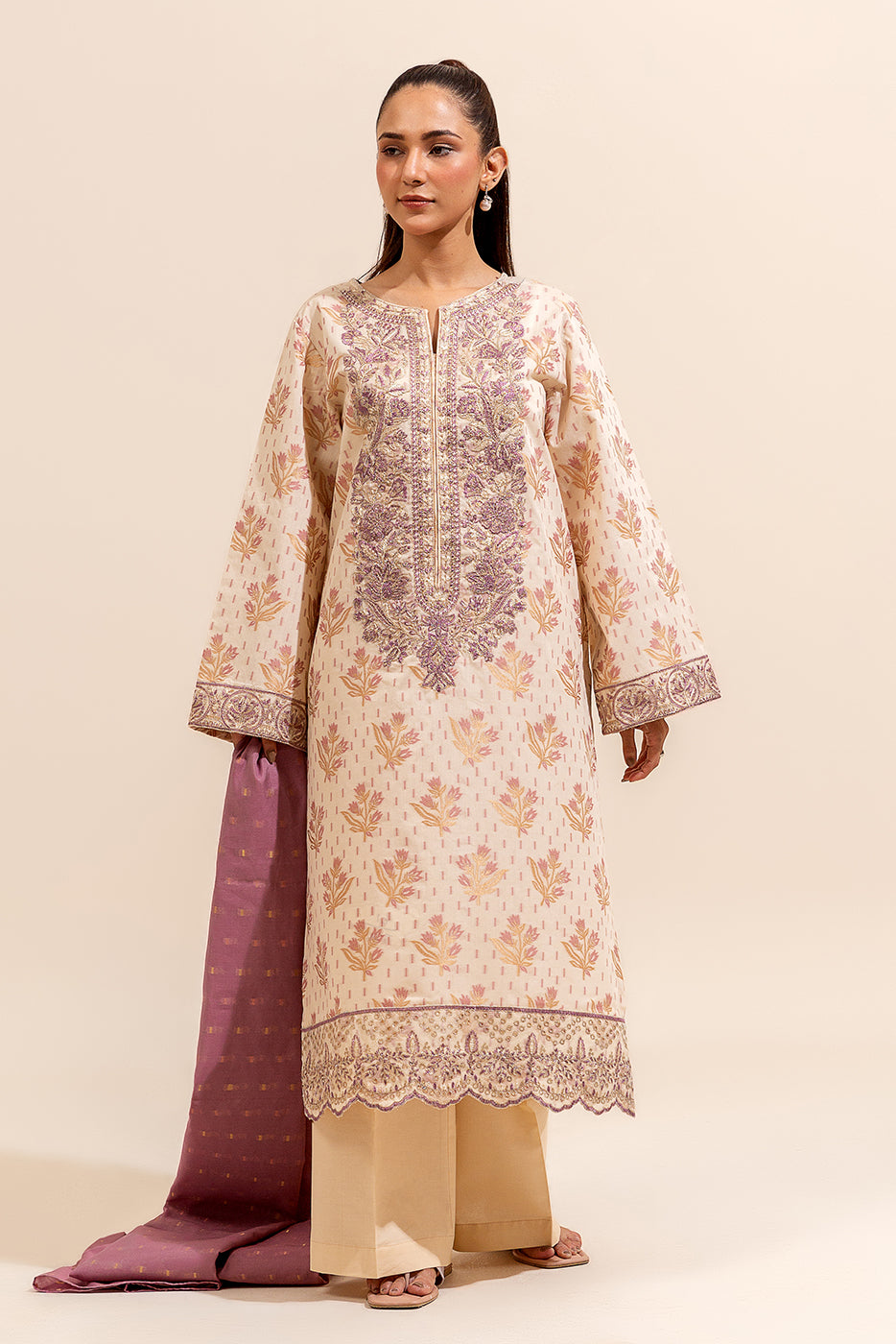3 PIECE EMBROIDERED JACQUARD SUIT-HEATHER FIELDS (UNSTITCHED)