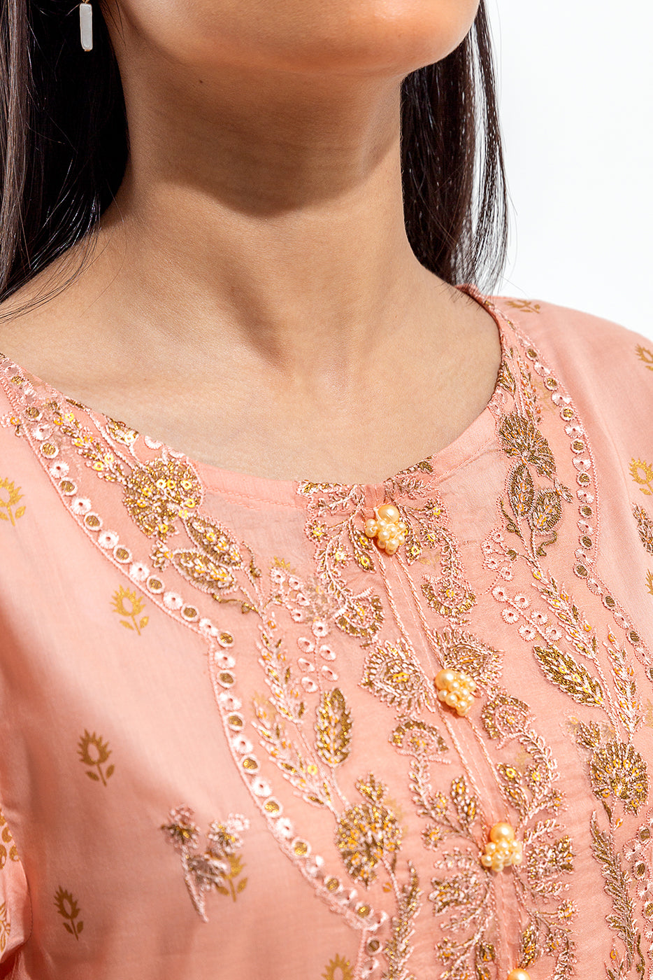 - Description: Embroidered Front And Sleeves Paired With Digital Printed Dupatta And Plain Slack Pants.