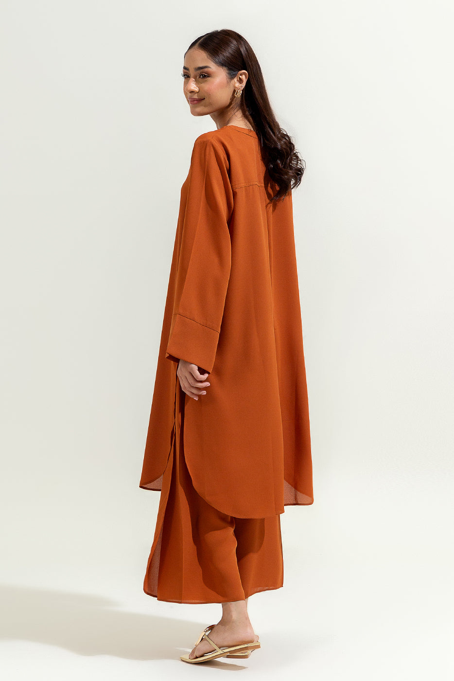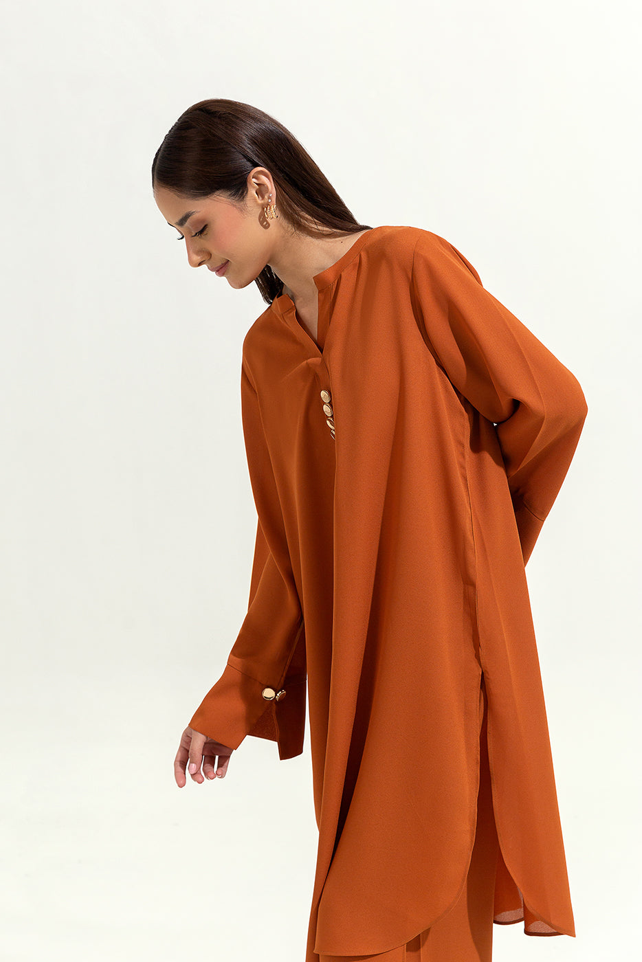 - Description: 2 Piece Shirt With Band Collar And Placket With Gold Button Detail.Sleeves With Cuffs And Gold Buttons.Round Hem.Paired With Overlapp Pants.