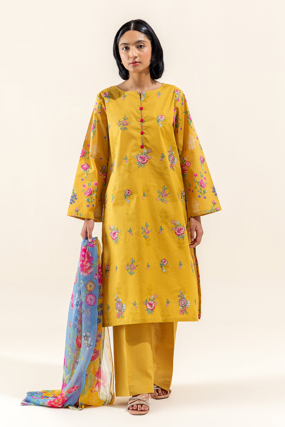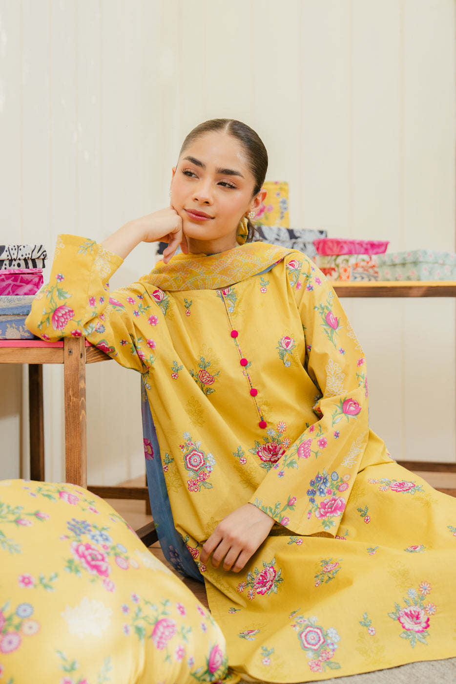 2 PIECE EMBROIDERED LAWN SUIT-FLAXEN BURST (UNSTITCHED)
