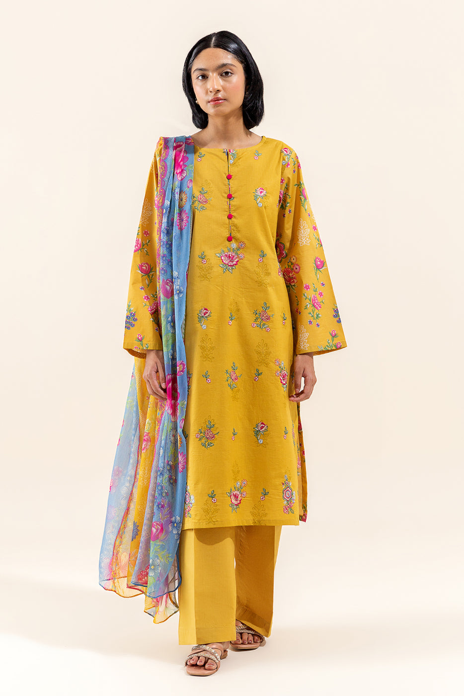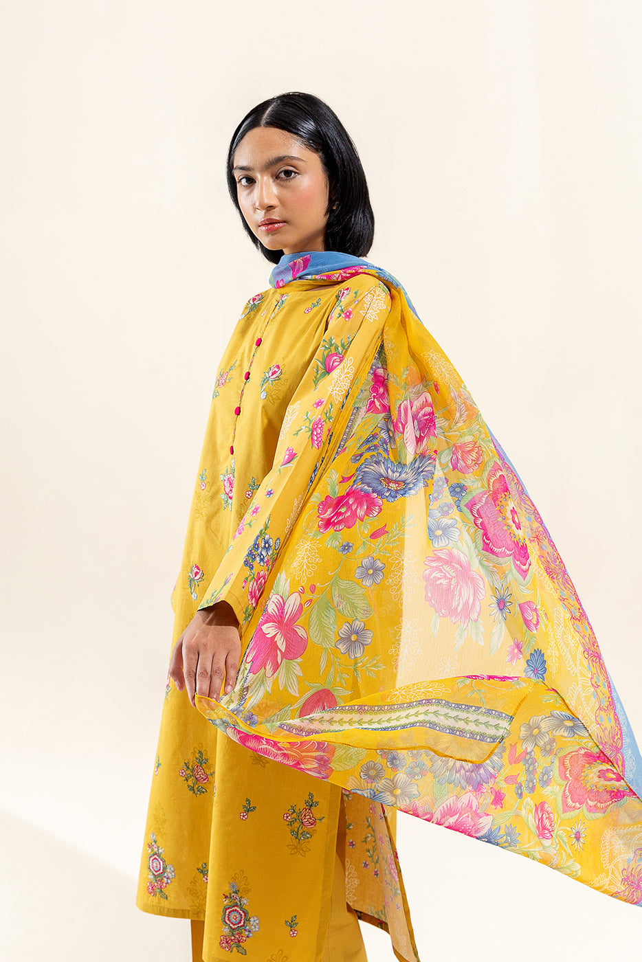 - 2.9 Mtrs Printed Lawn Shirt With Embroidery, 2.5 Mtrs Printed Blended Chiffon Dupatta
