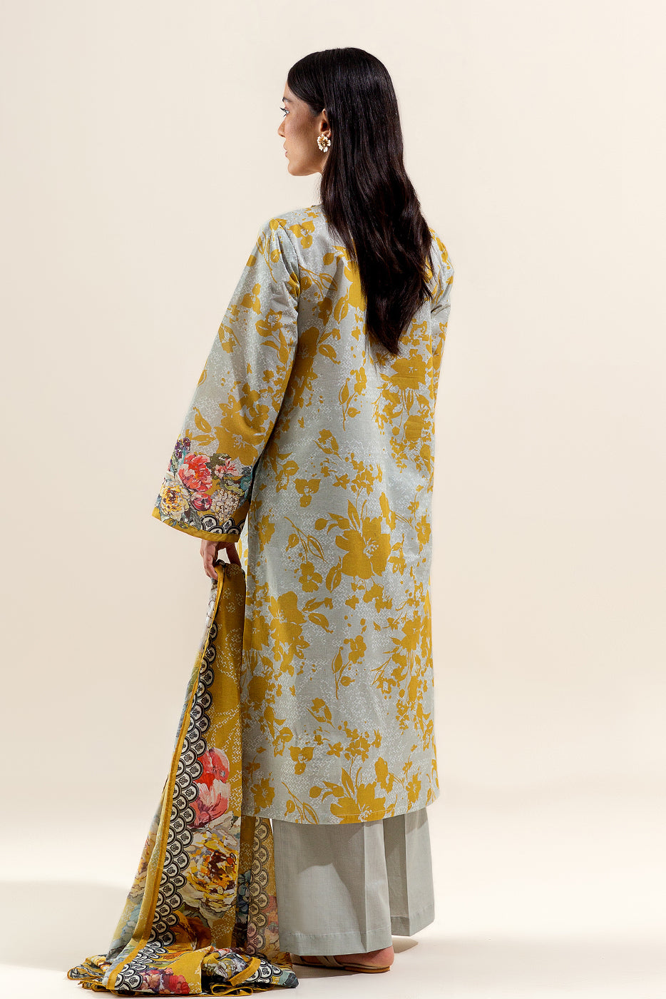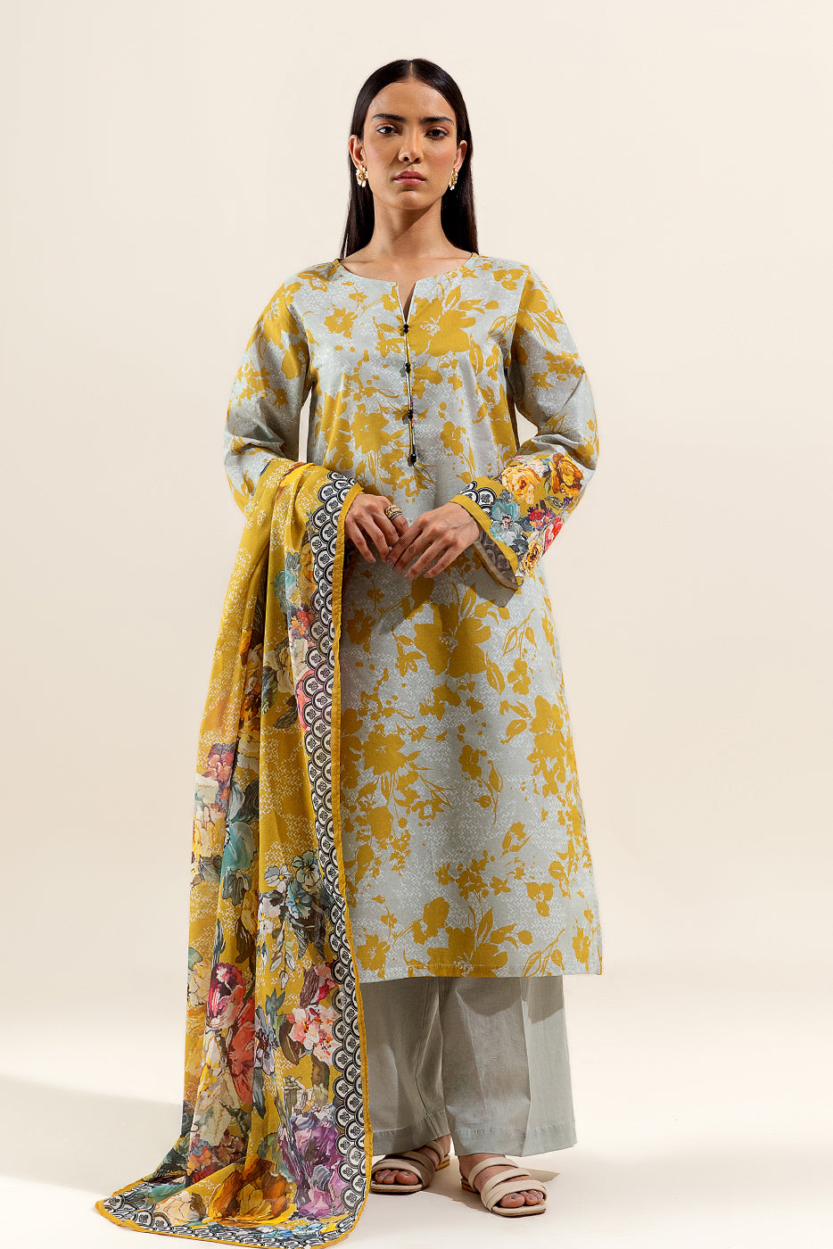3 PIECE PRINTED LAWN SUIT-CANARY BLOOM (UNSTITCHED)
