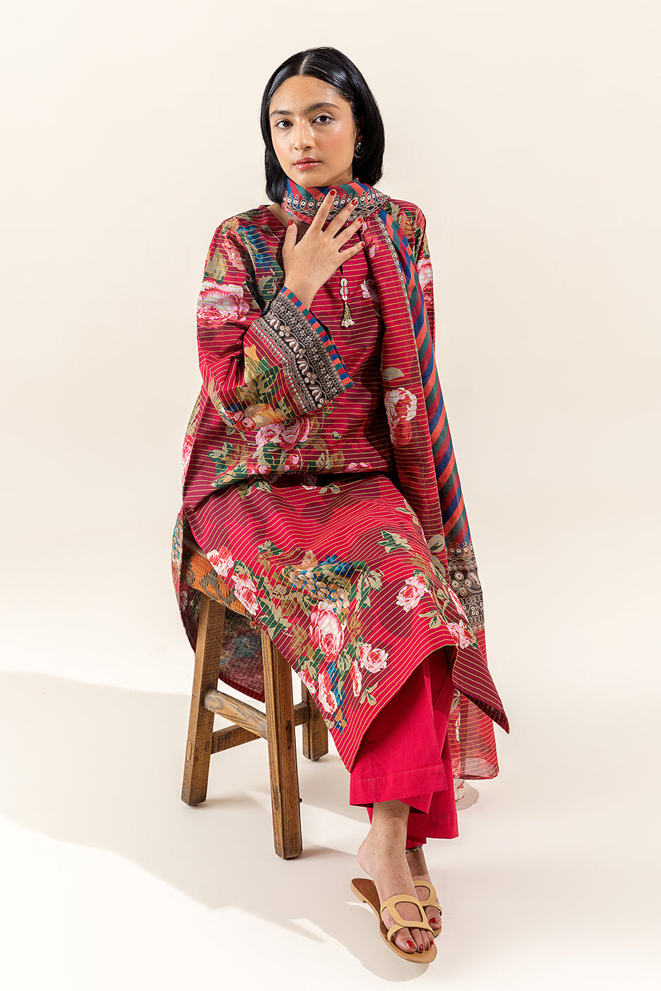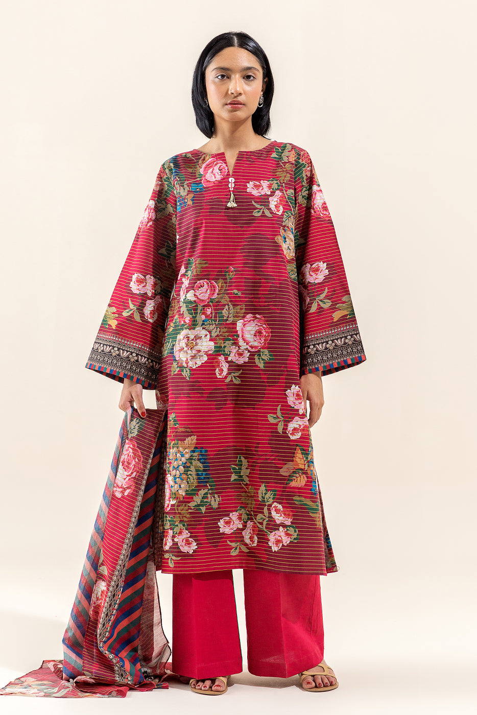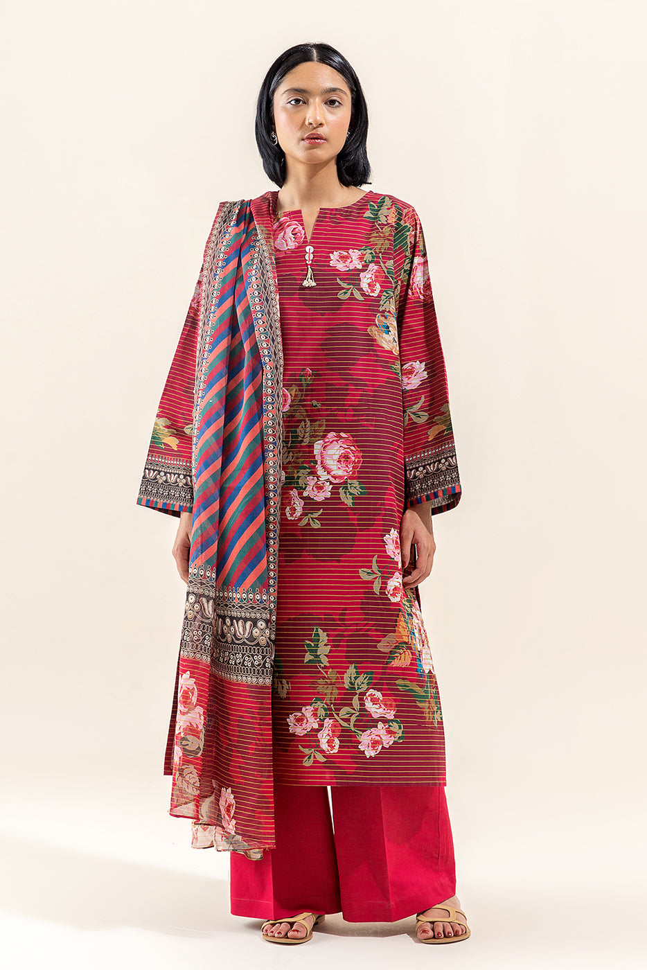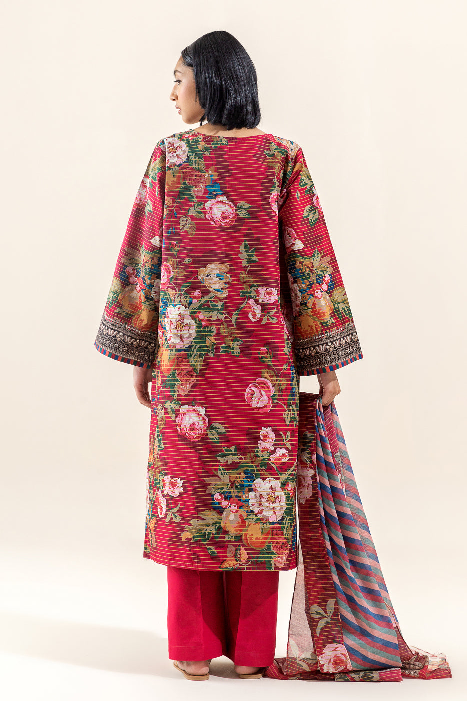 3 PIECE PRINTED LAWN SUIT-ROSETTE WILT (UNSTITCHED)