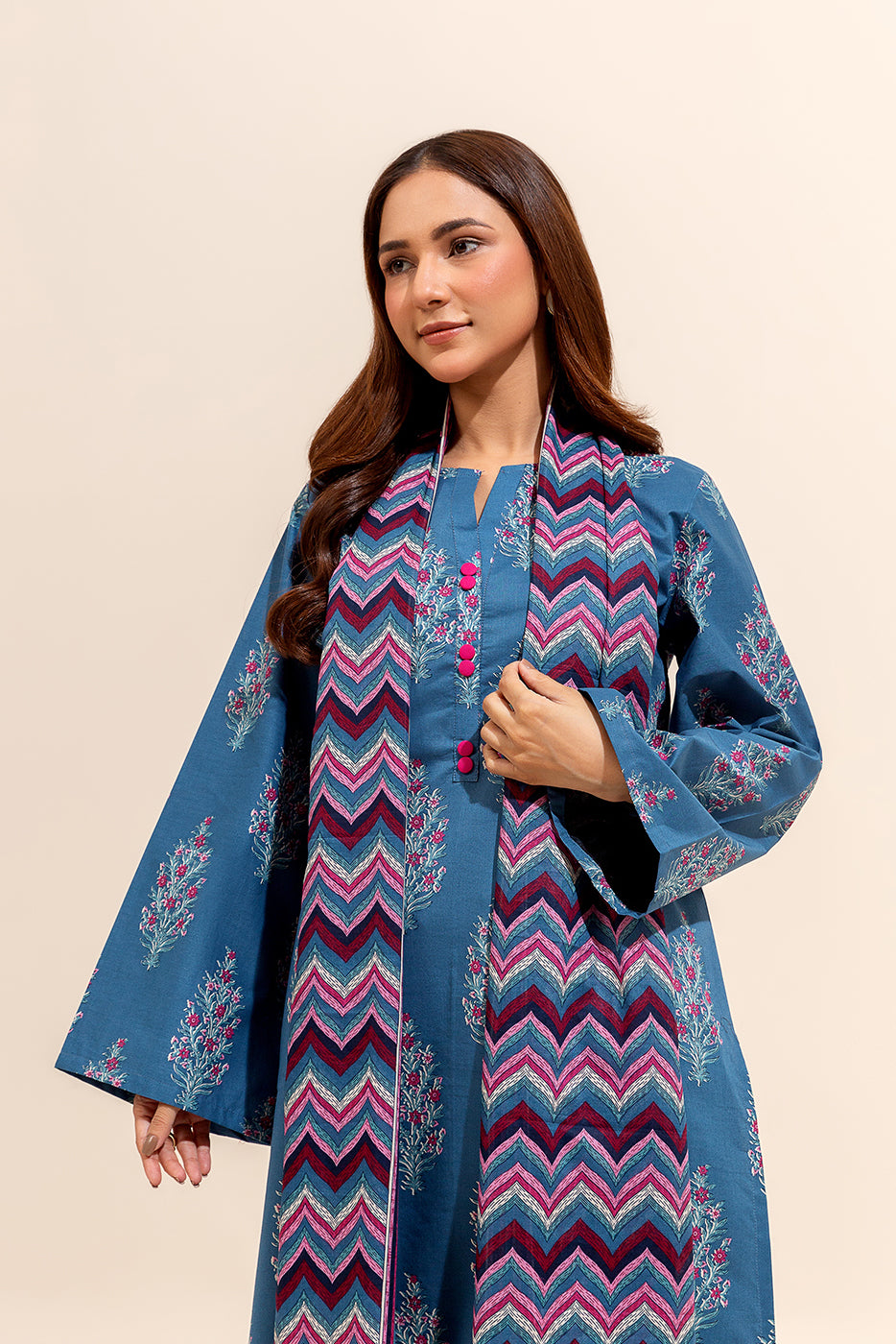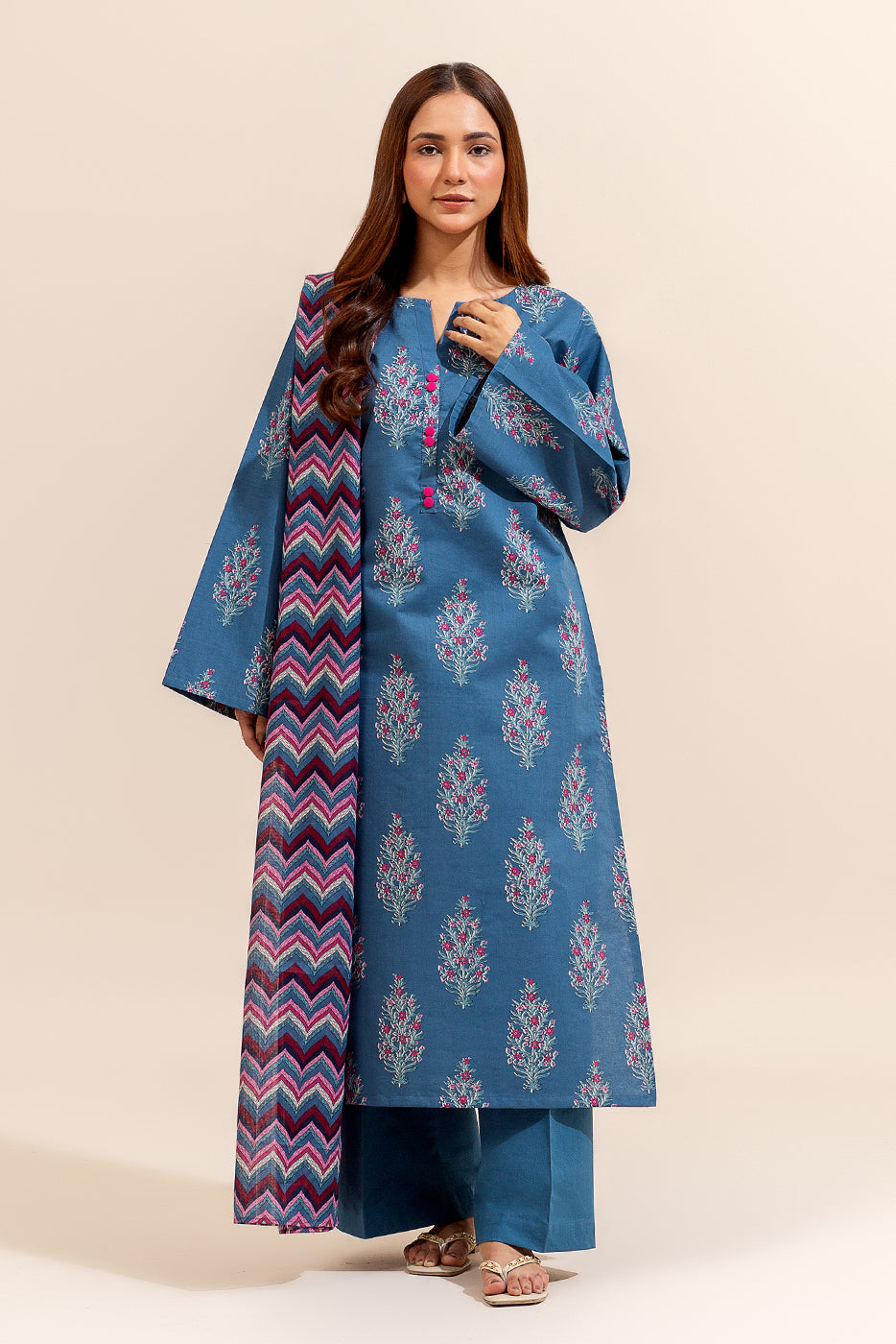 3 PIECE PRINTED LAWN SUIT-MARINE SERENITY (UNSTITCHED)