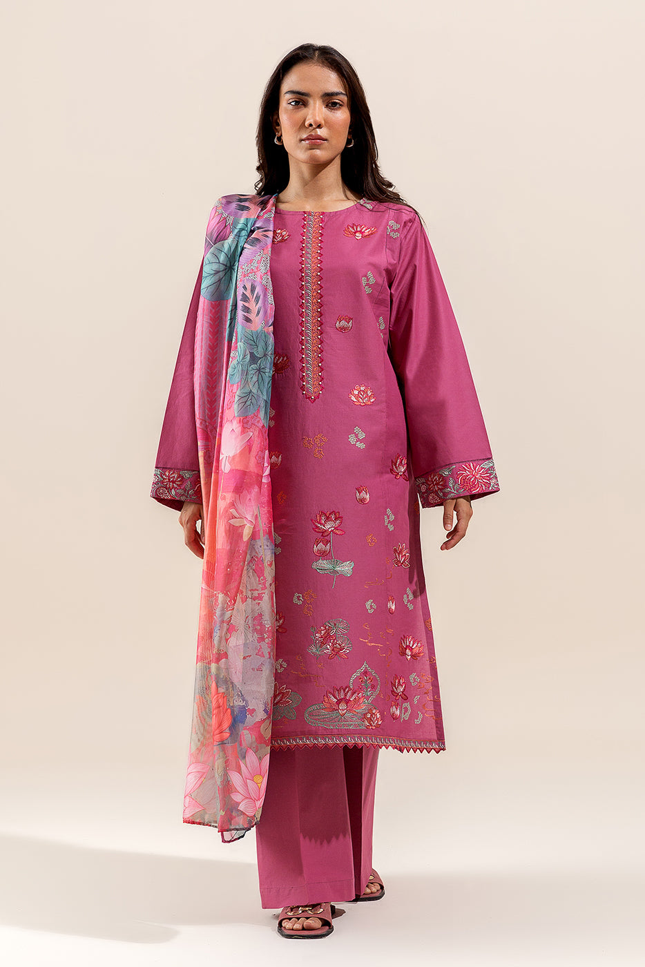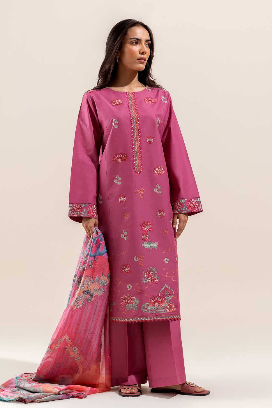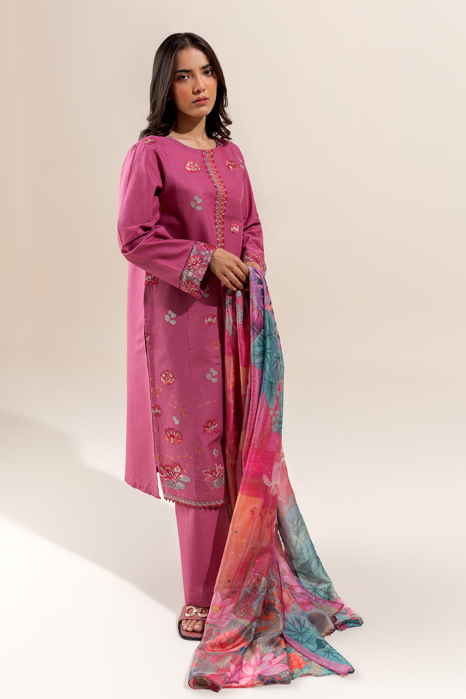 3 PIECE EMBROIDERED LAWN SUIT-LOTUS BLUSH (UNSTITCHED)