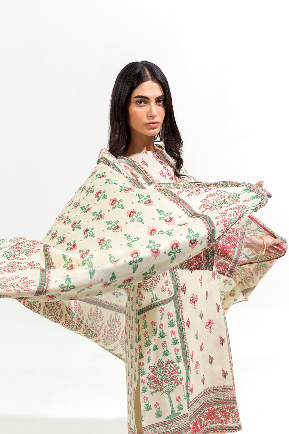 - Description: 3Pc Printed Set With Embroidered Neckline Paired With Straight Pants And Lawn Duppata.