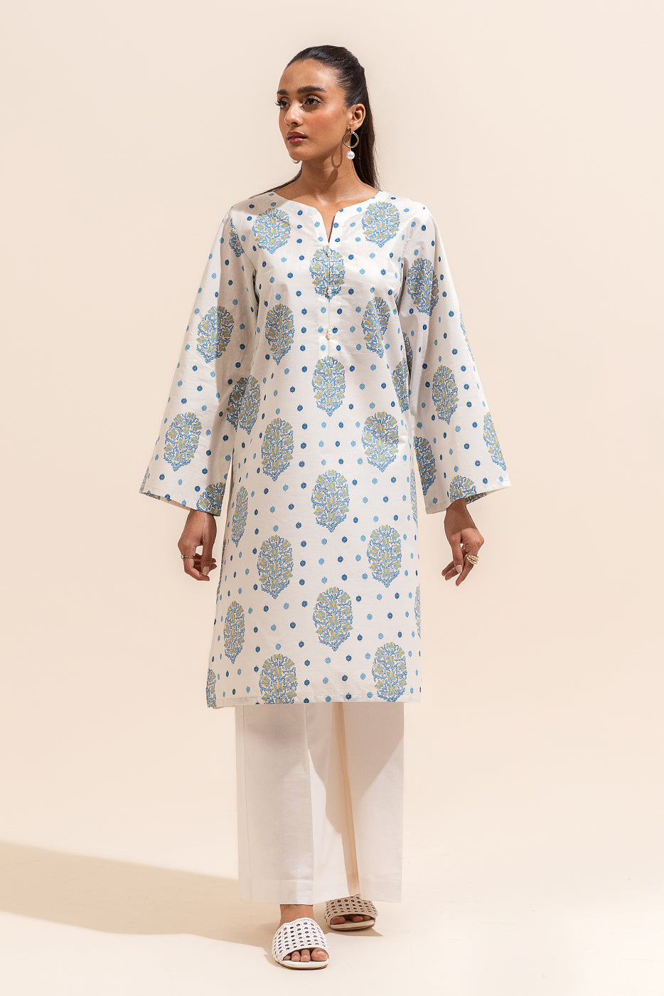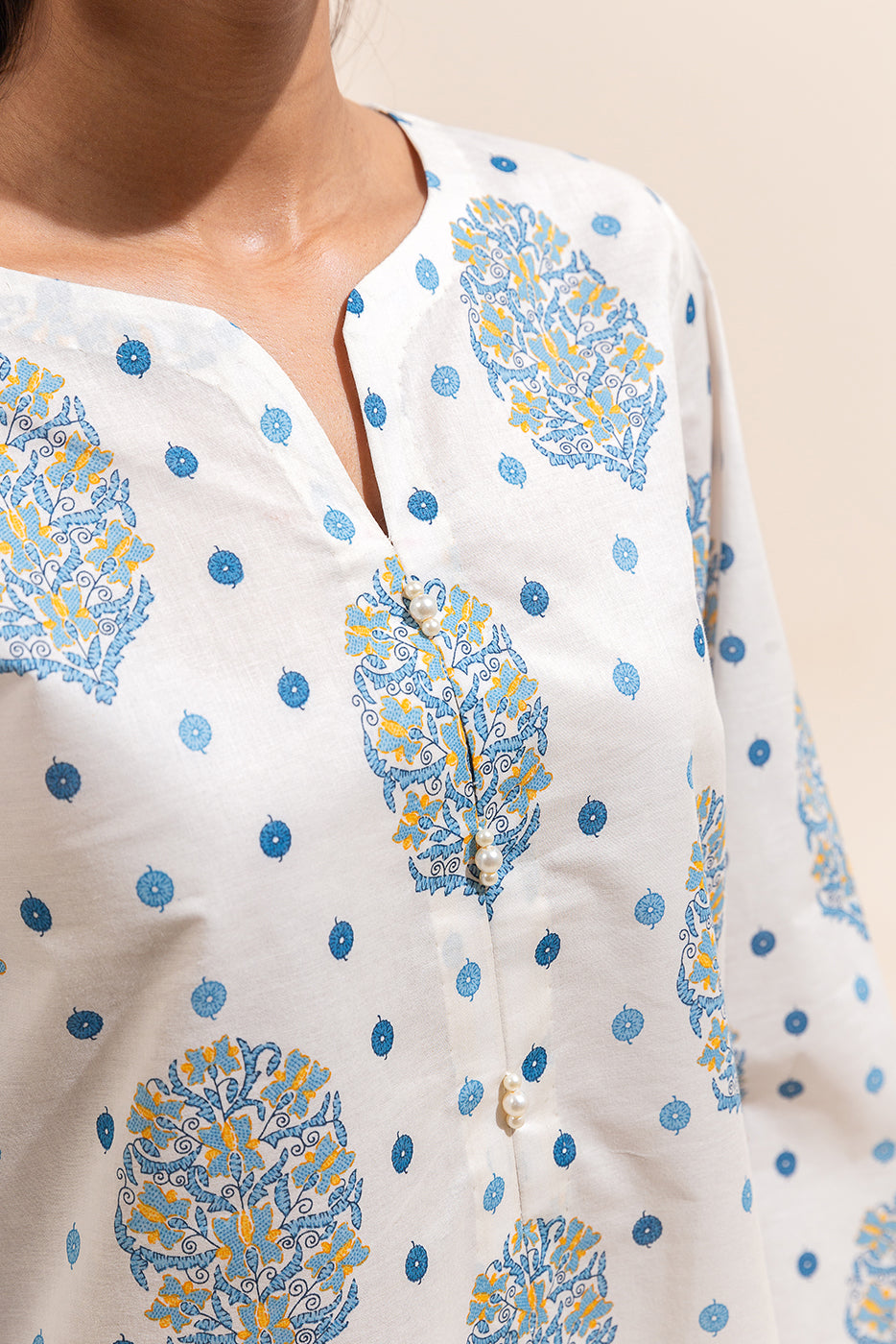 1 PIECE PRINTED LAWN SHIRT-CREME GRANITE (UNSTITCHED)