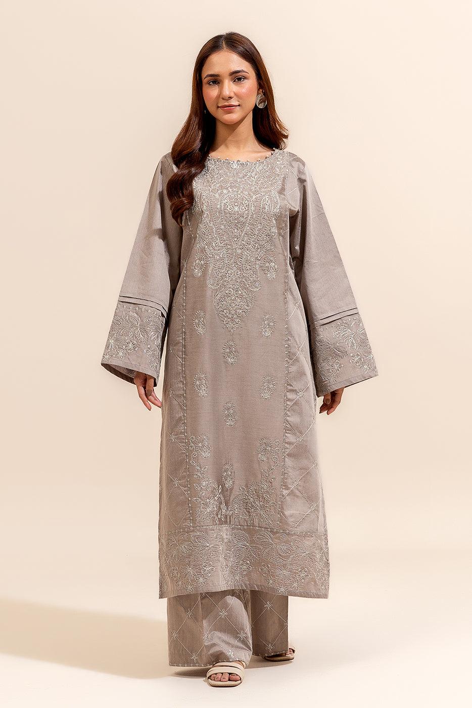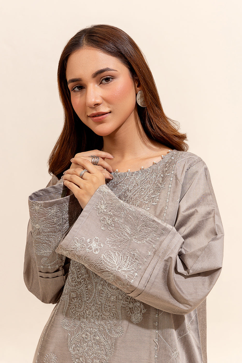 2 PIECE EMBROIDERED TWO TONE SUIT-HARBOR GREY (UNSTITCHED)