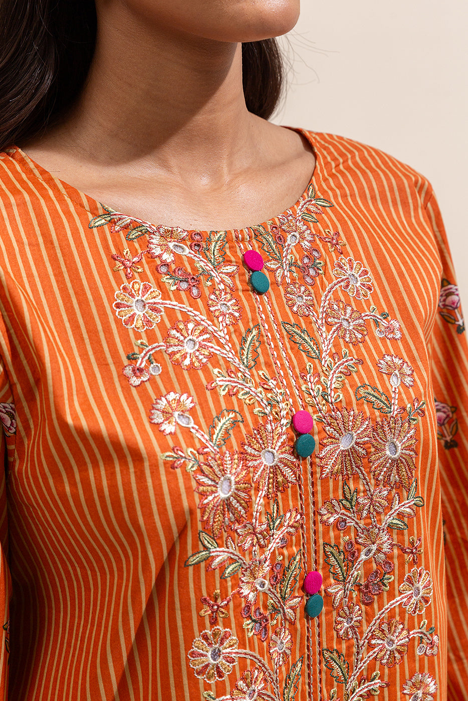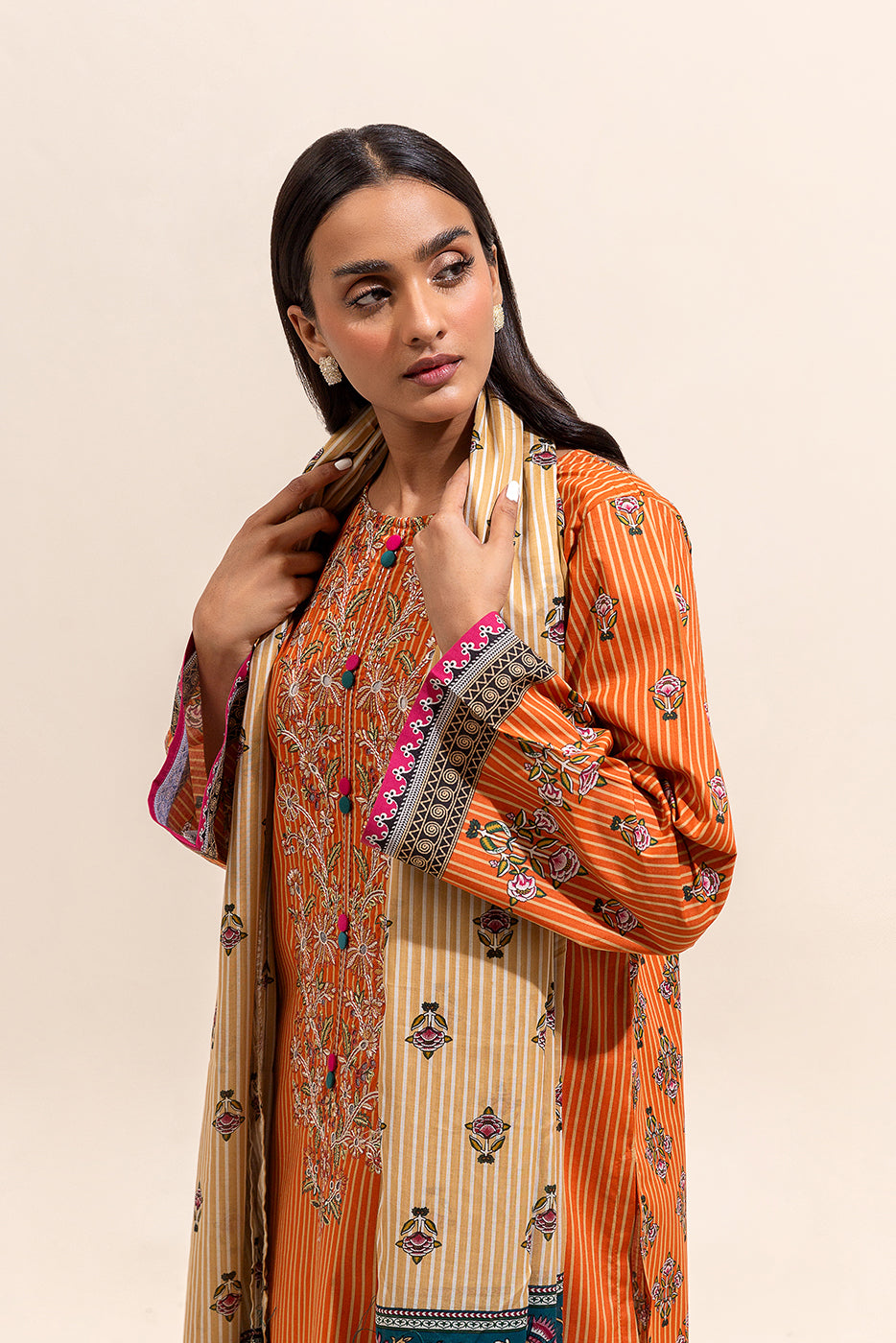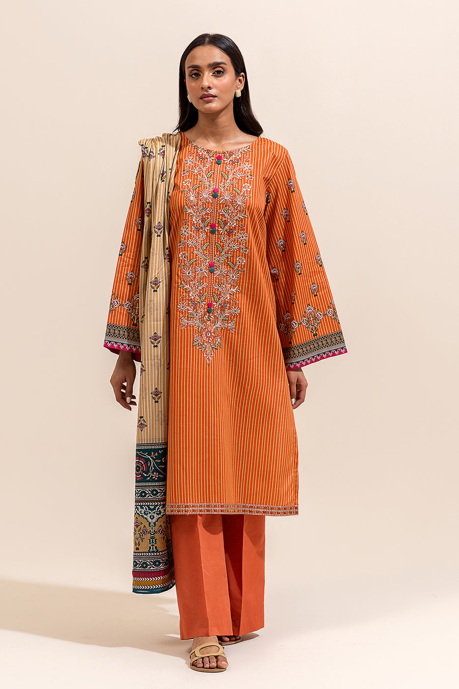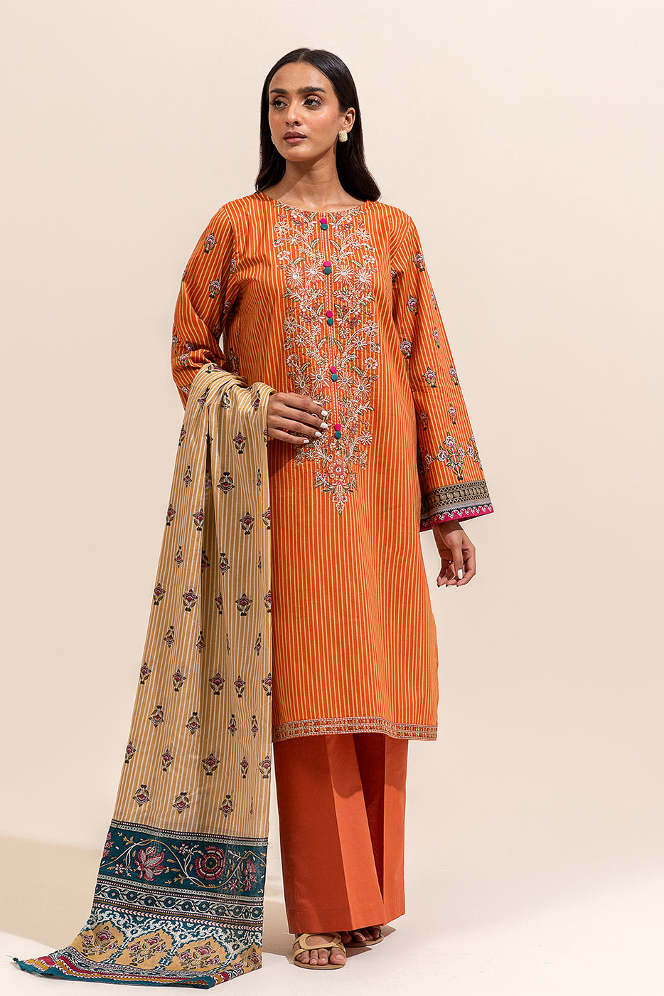 3 PIECE EMBROIDERED LAWN SUIT-RUSSET GLAZE ( UNSTITCHED)