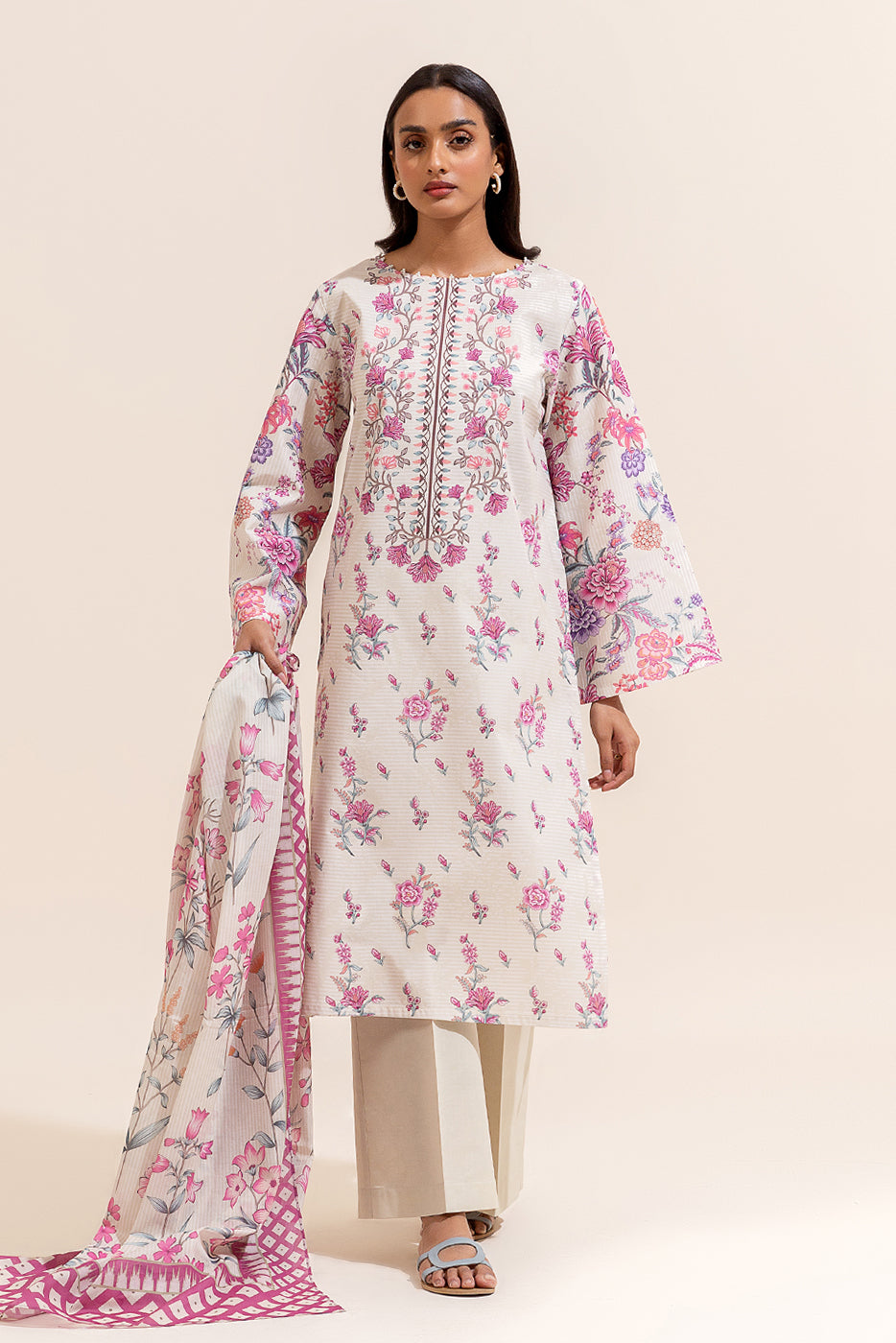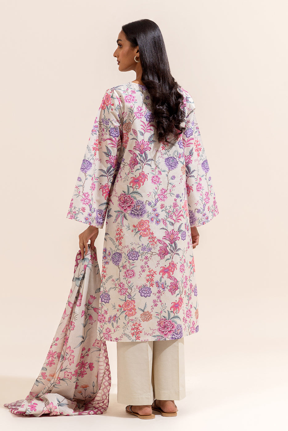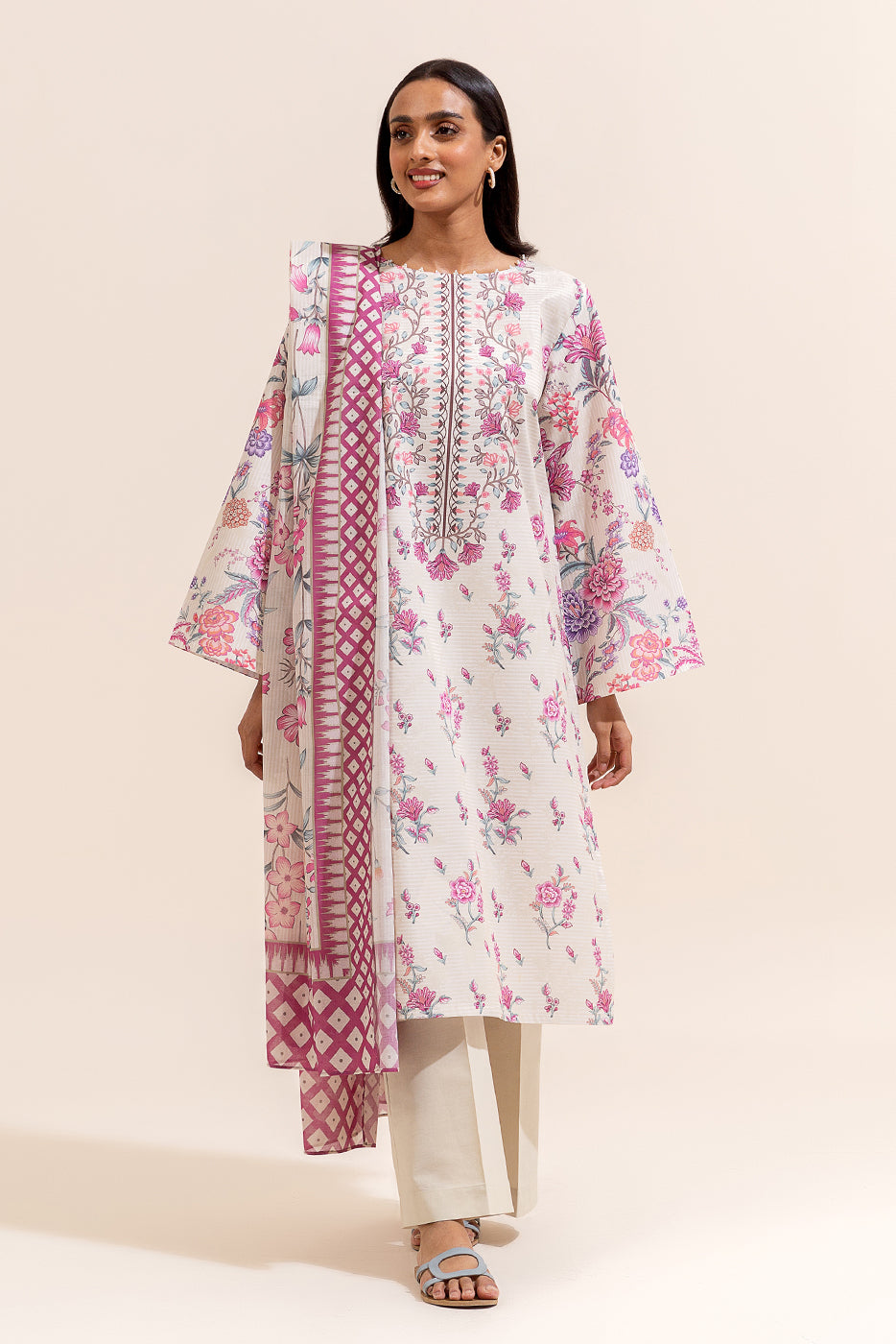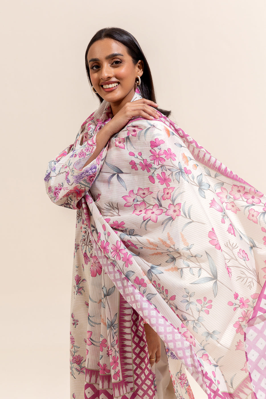 3 PIECE PRINTED LAWN SUIT-CRÈME FLORALS (UNSTITCHED)