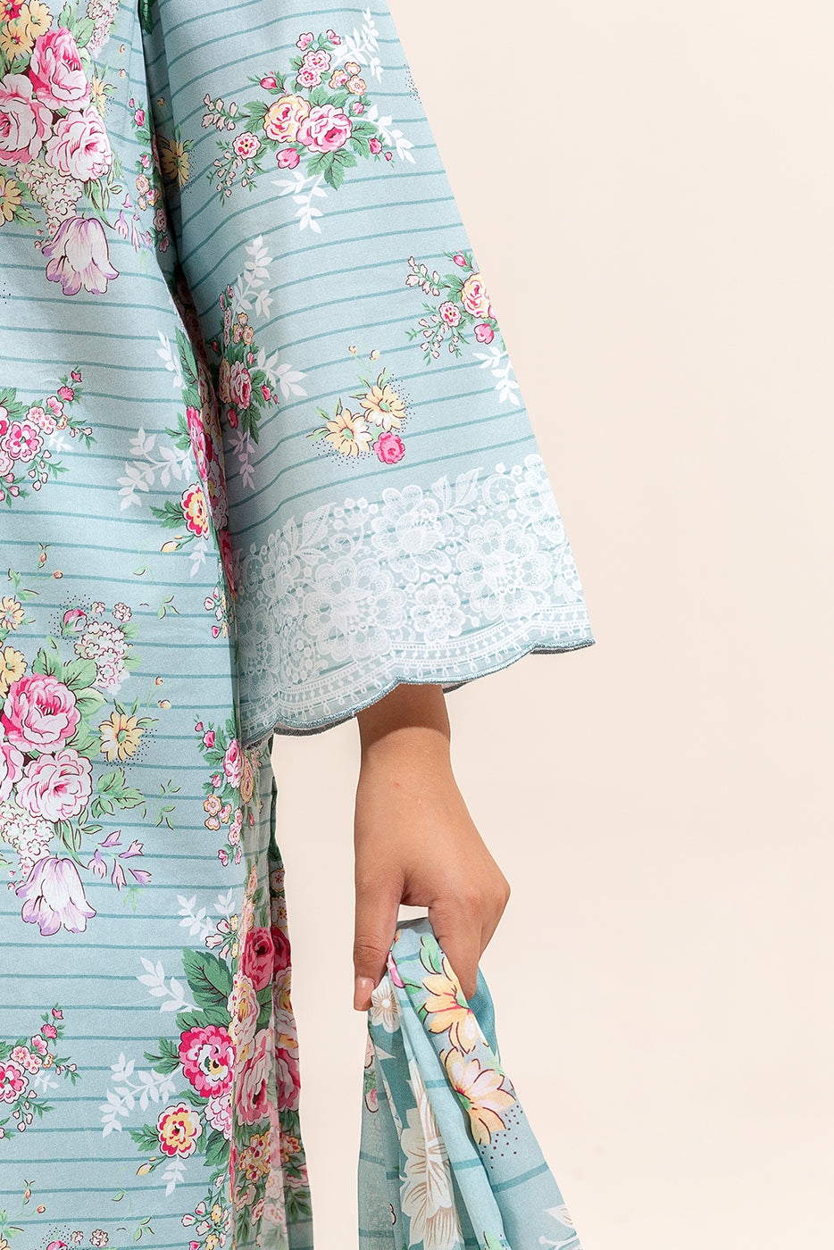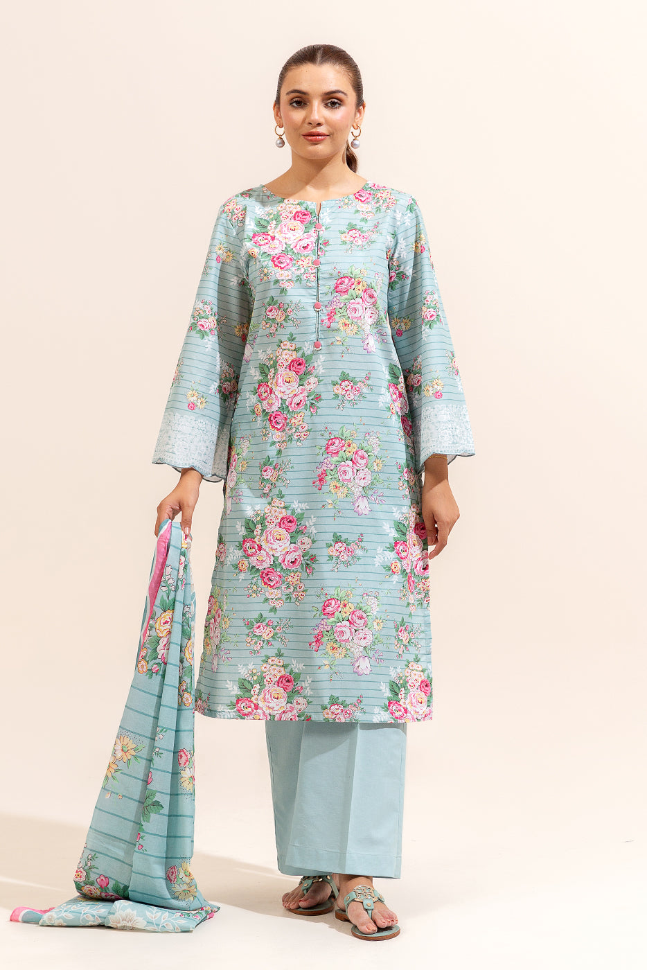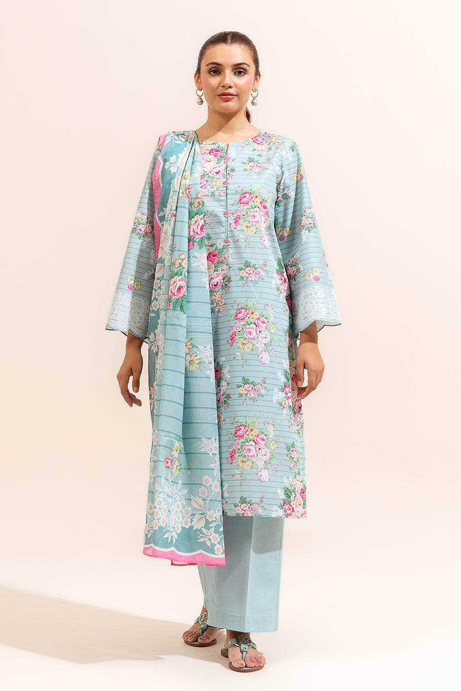 3 PIECE PRINTED LAWN SUIT-CYAN FLORA (UNSTITCHED)