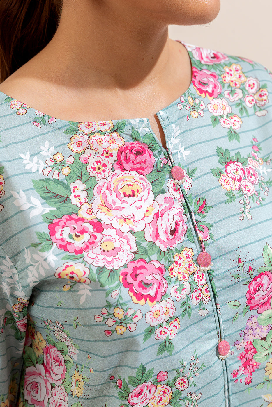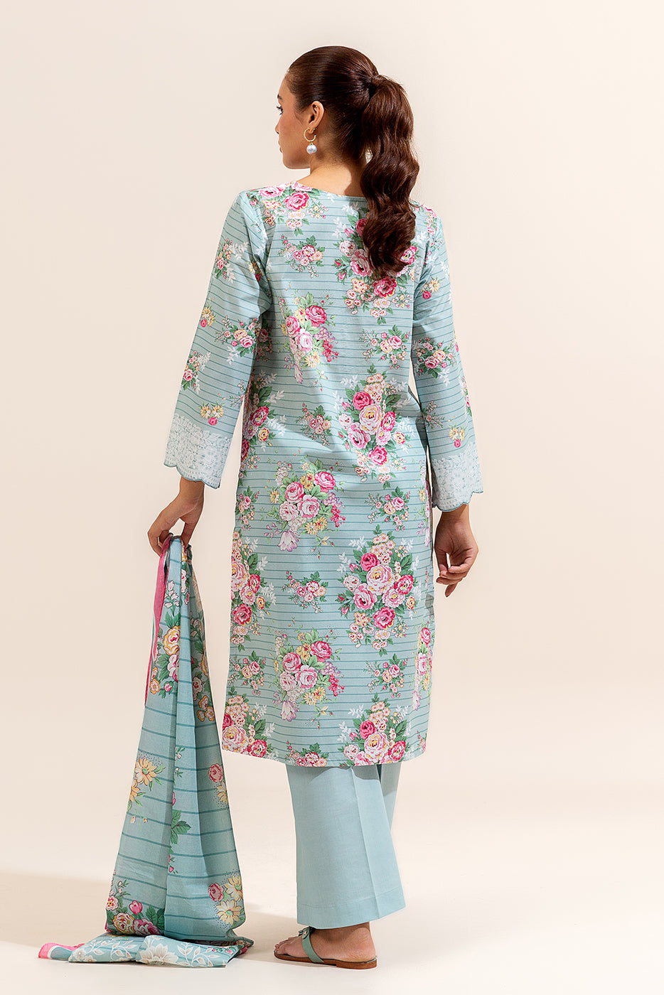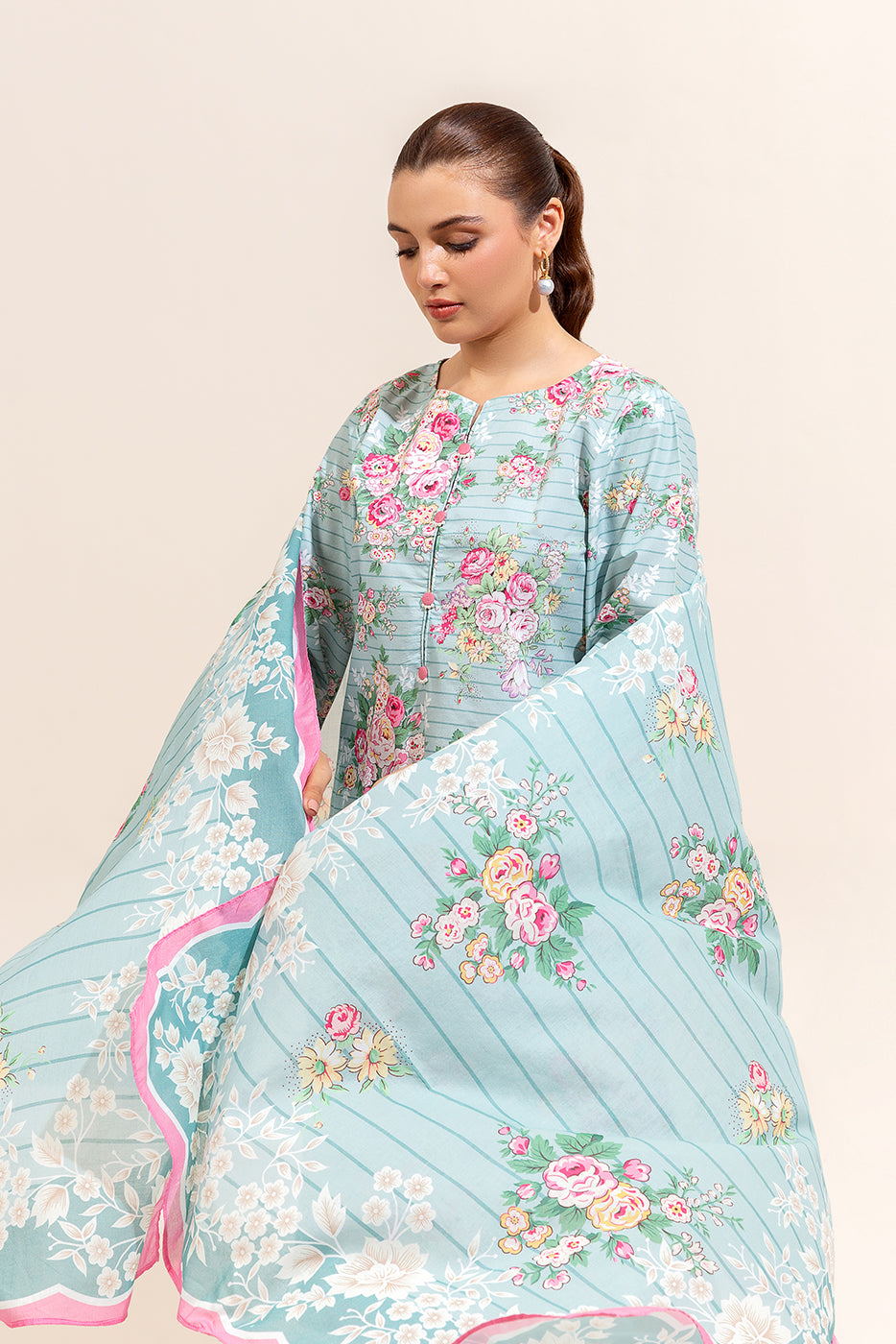 3 PIECE PRINTED LAWN SUIT-CYAN FLORA (UNSTITCHED)
