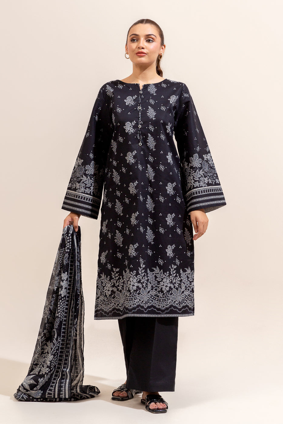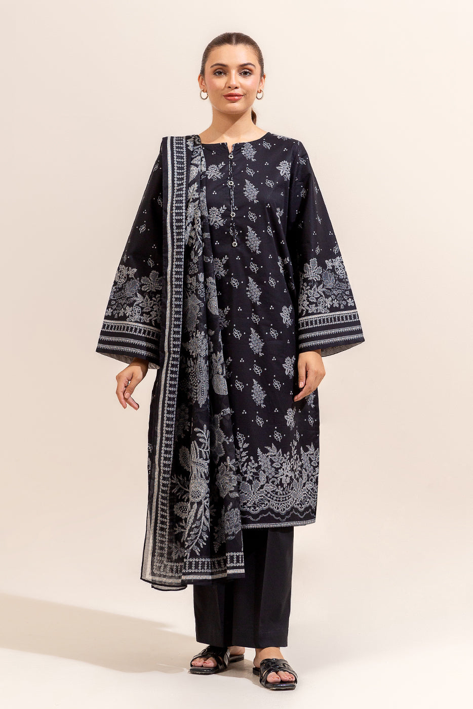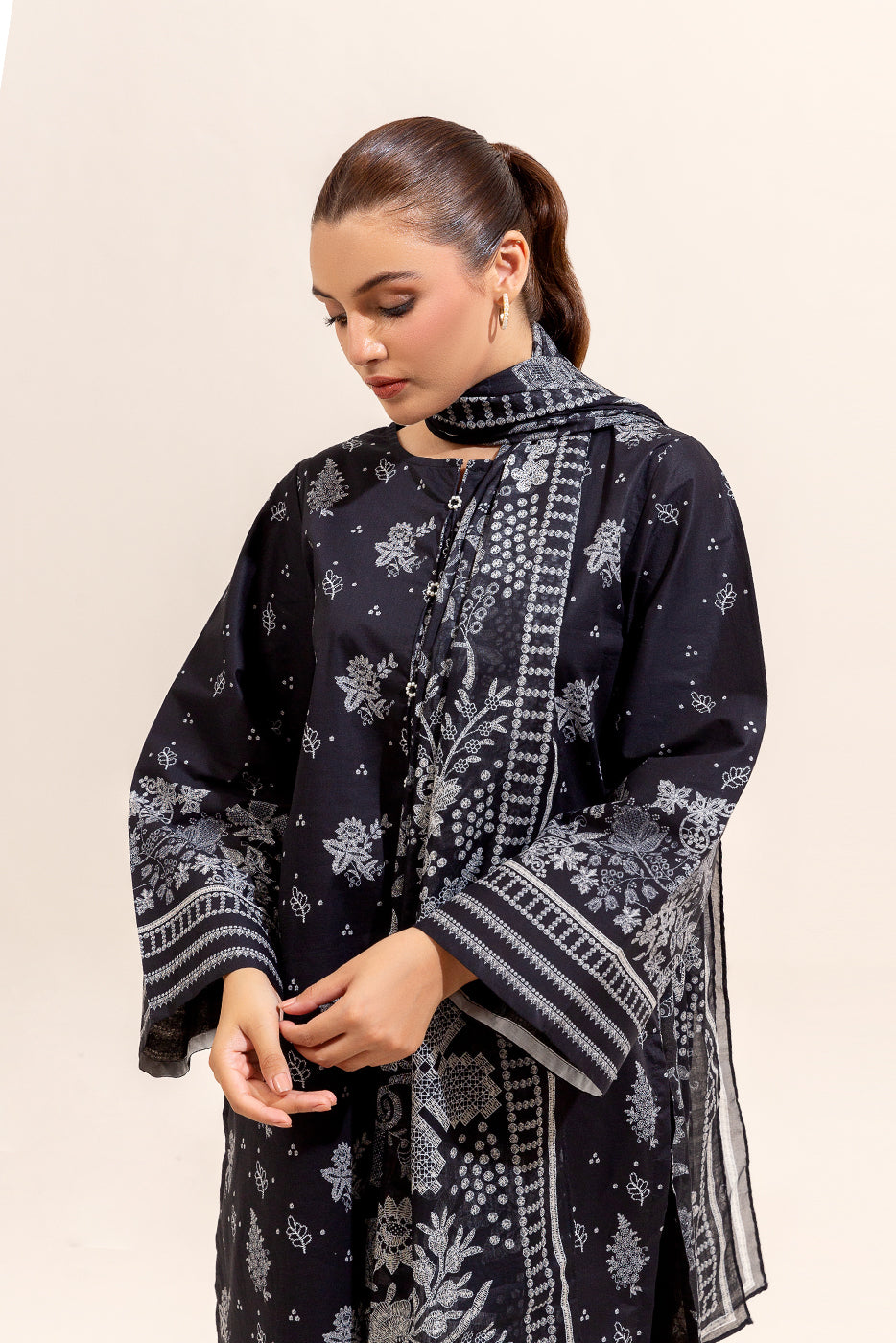 3 PIECE PRINTED LAWN SUIT-BLACK ORCHID (UNSTITCHED)
