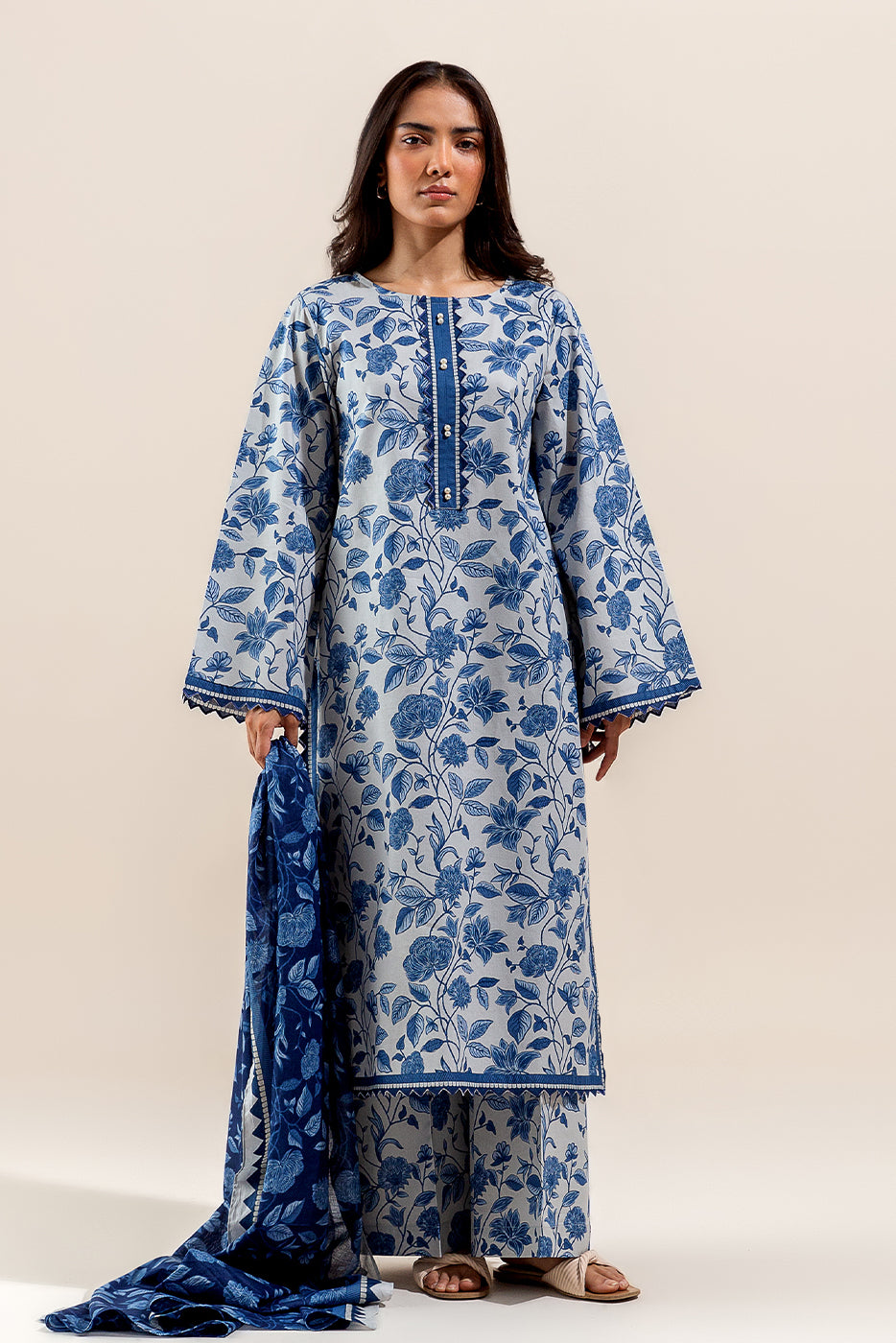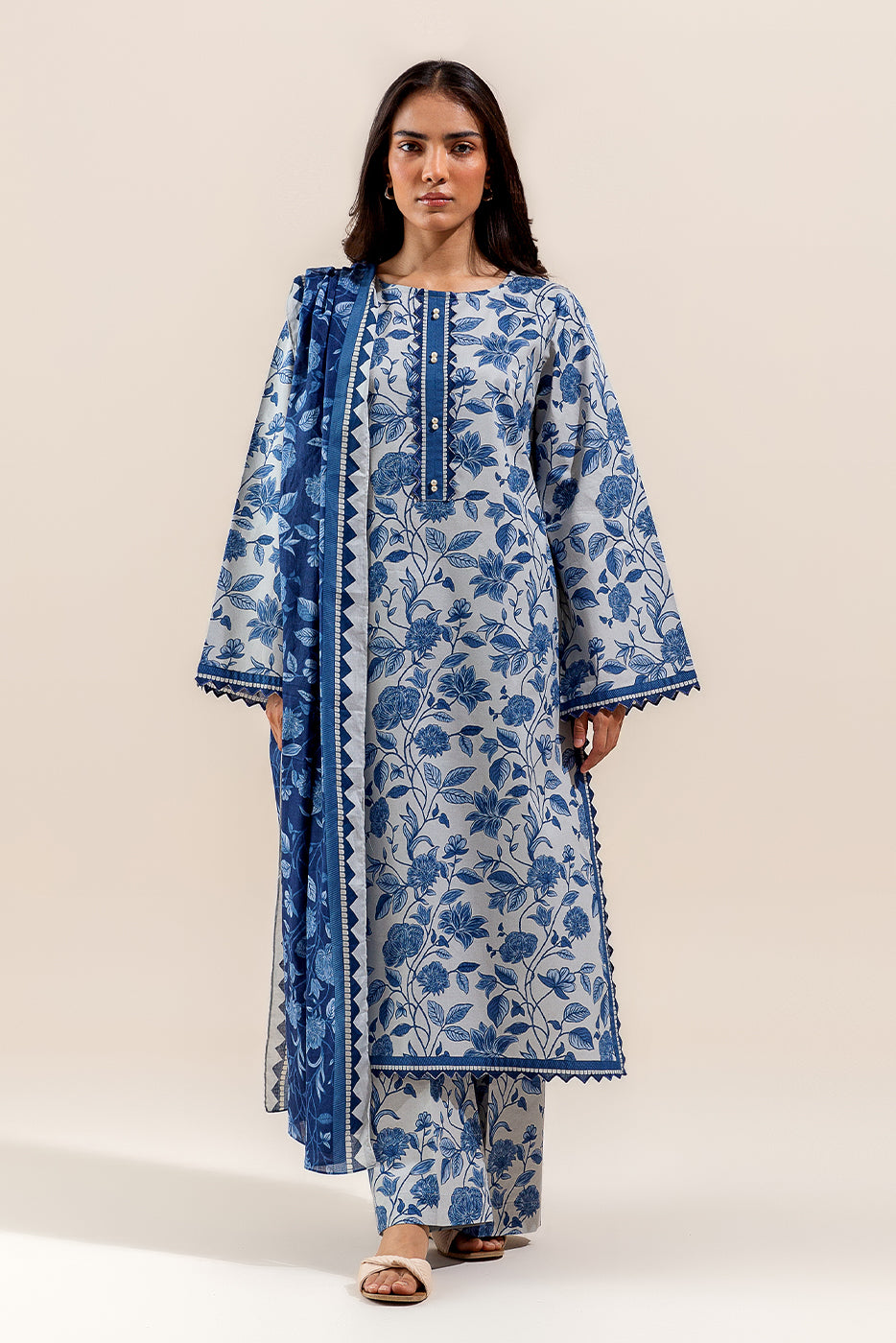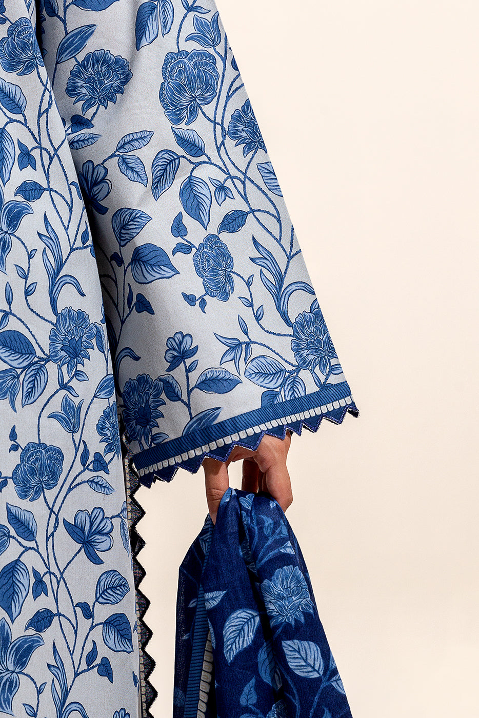 3 PIECE PRINTED LAWN SUIT-BLUE HUE (UNSTITCHED)