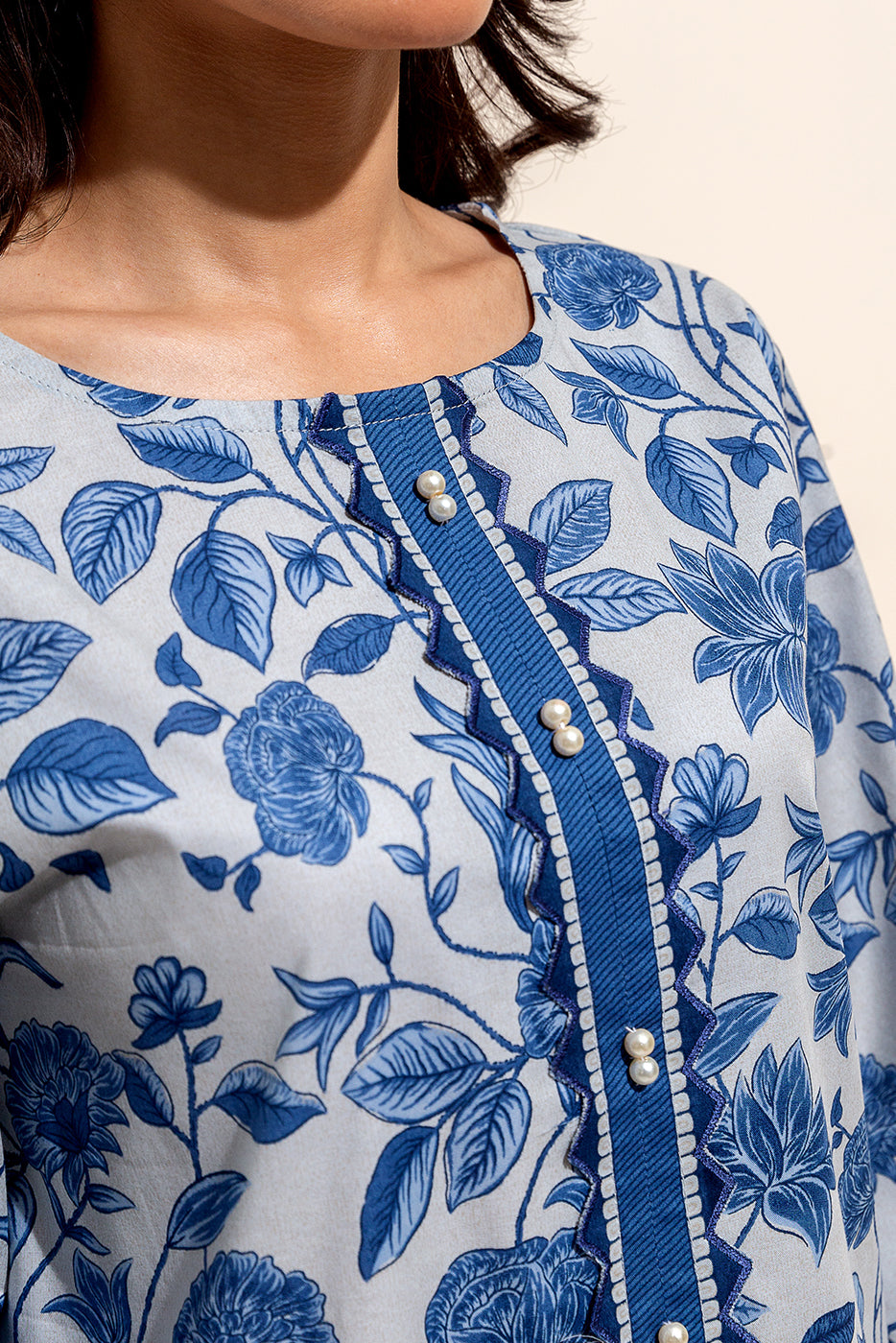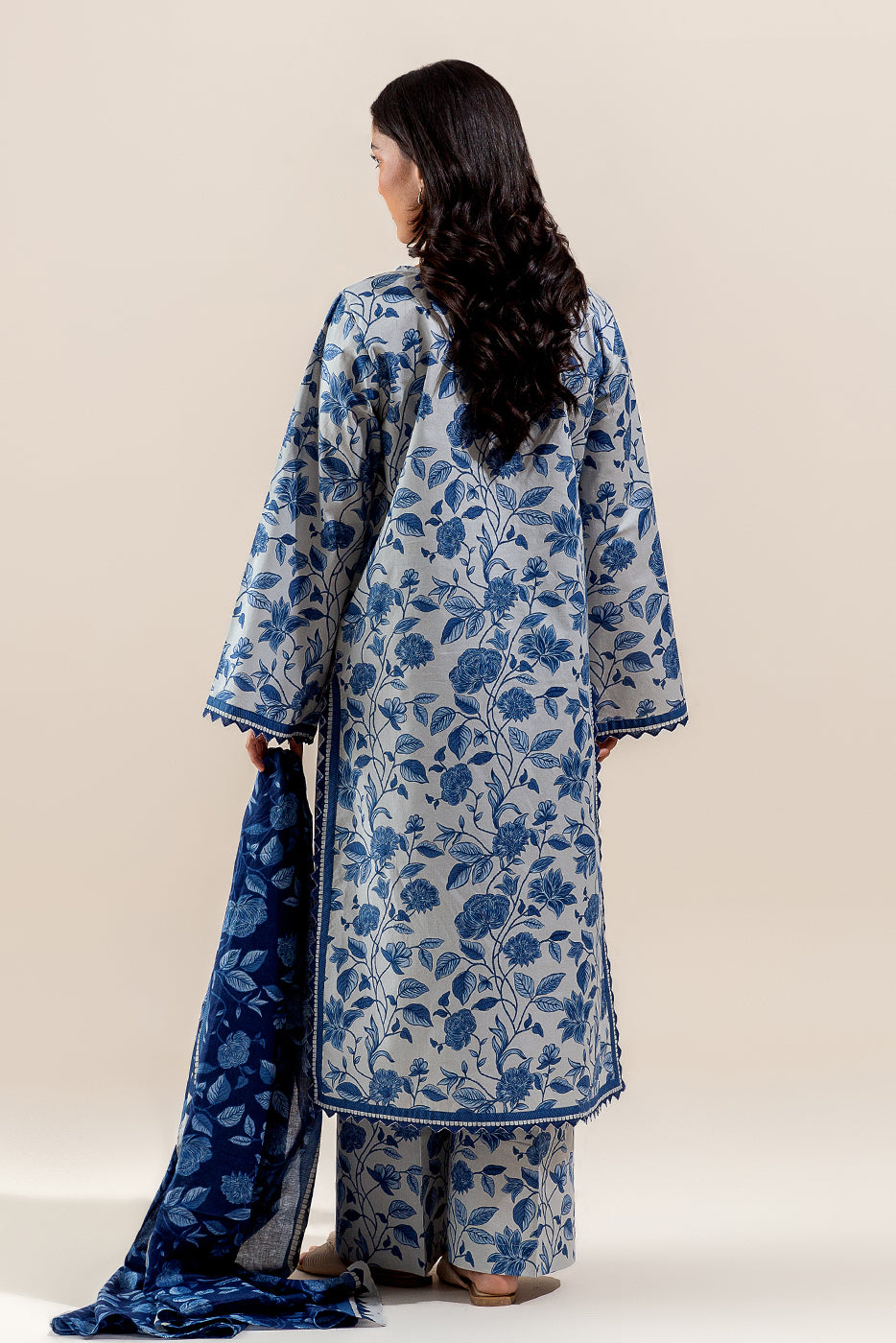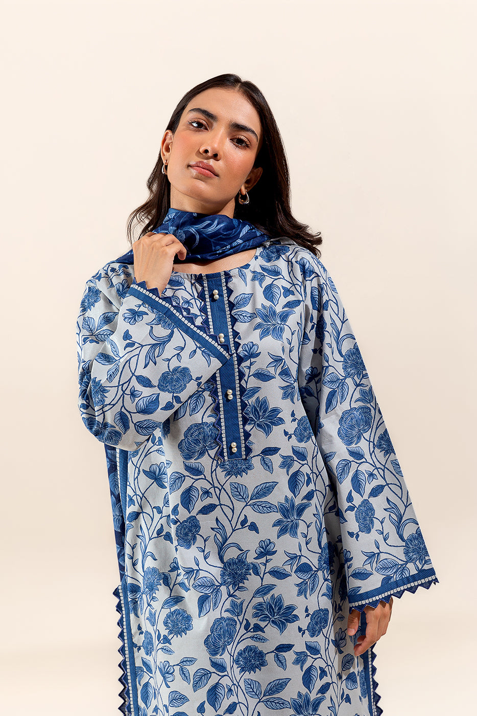 3 PIECE PRINTED LAWN SUIT-BLUE HUE (UNSTITCHED)