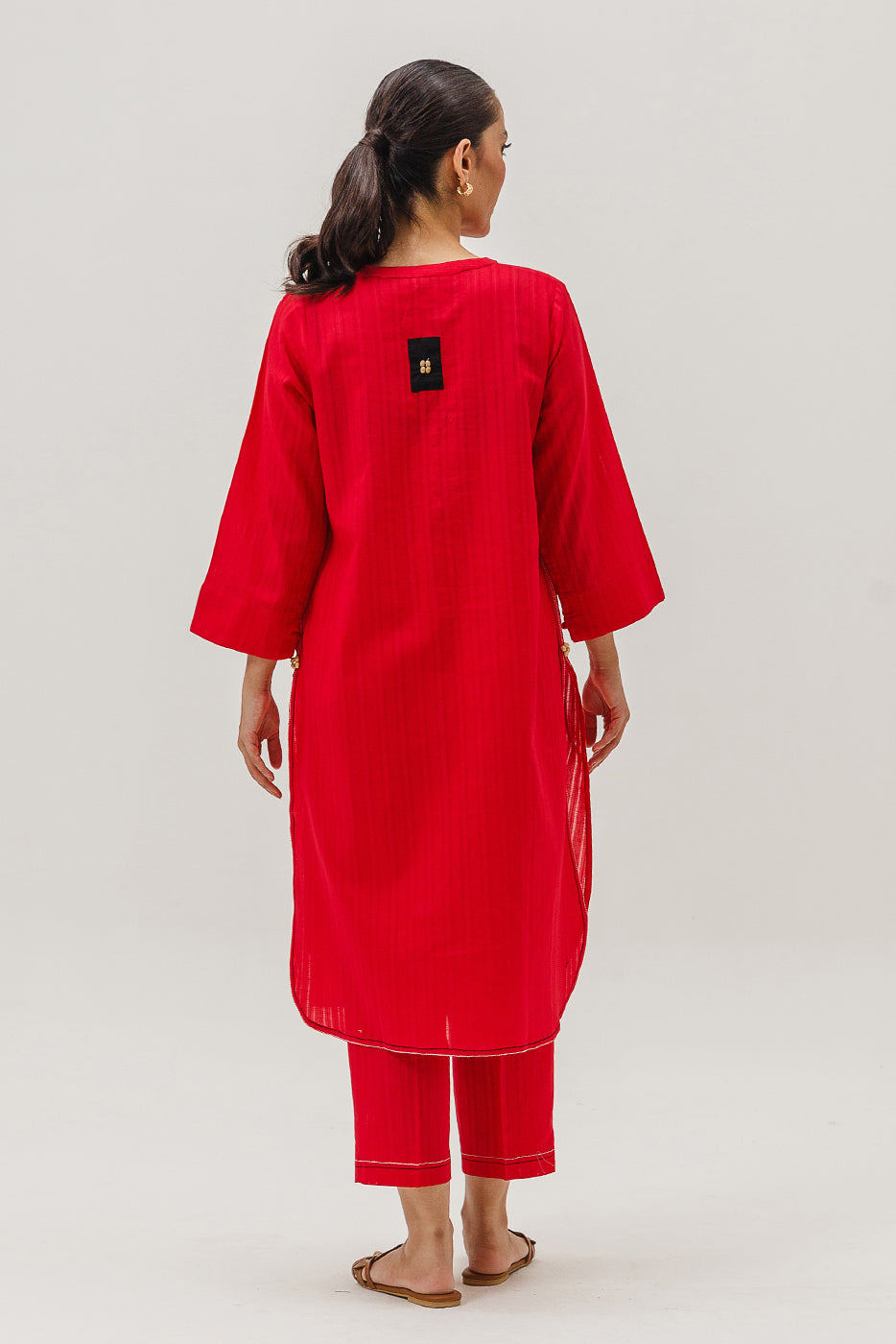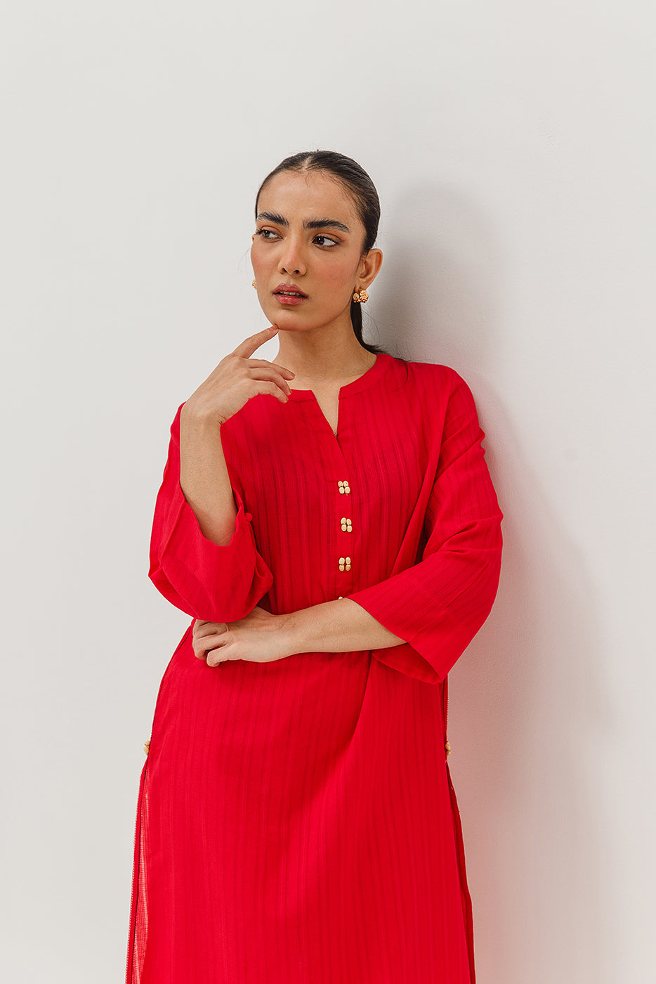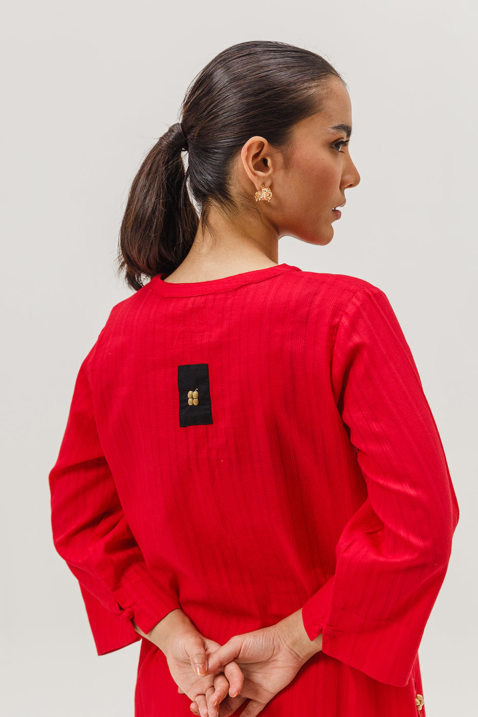 - Description: Shirt With Band Neckline And Placket With Beads Detail. Sleeves With Chuff And Loop Button With Beads Detail.Round Hem.