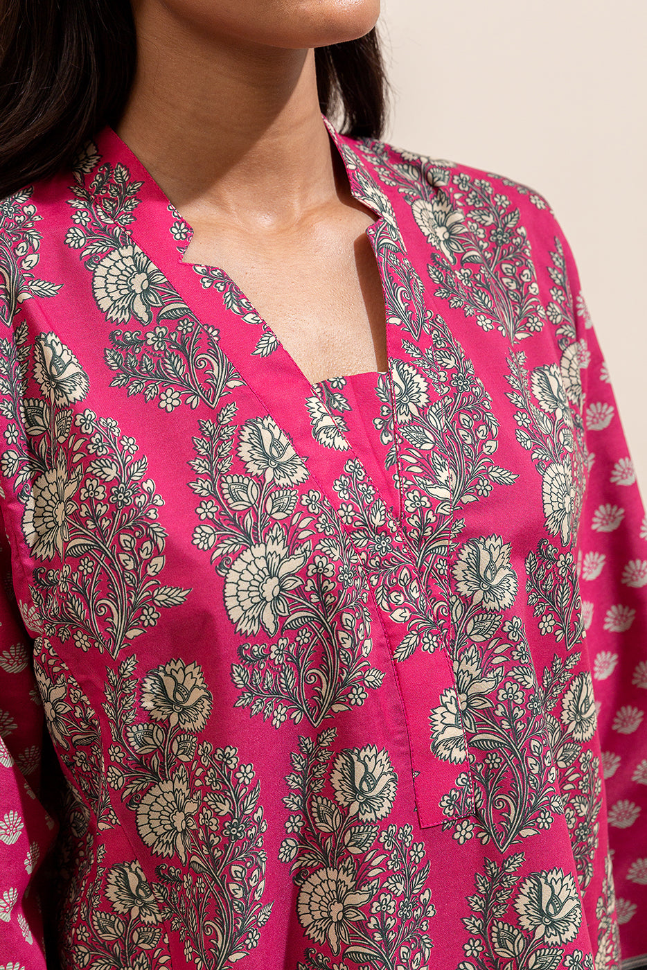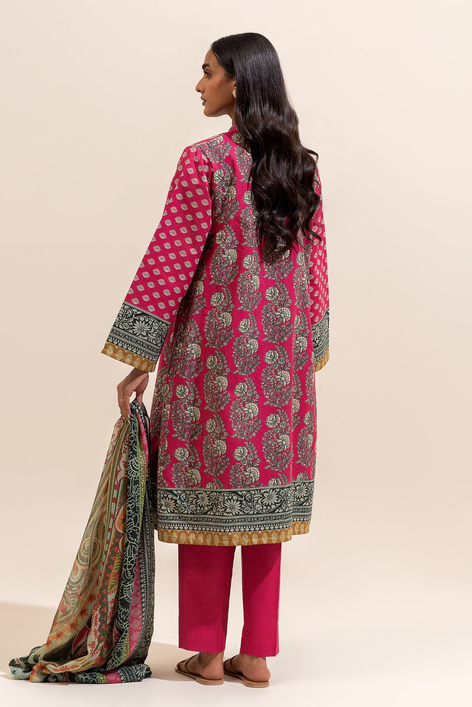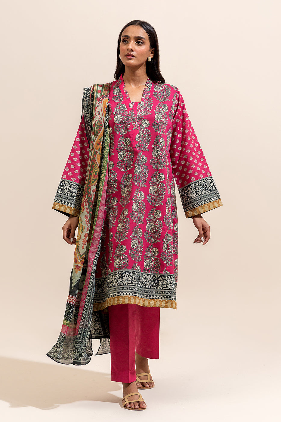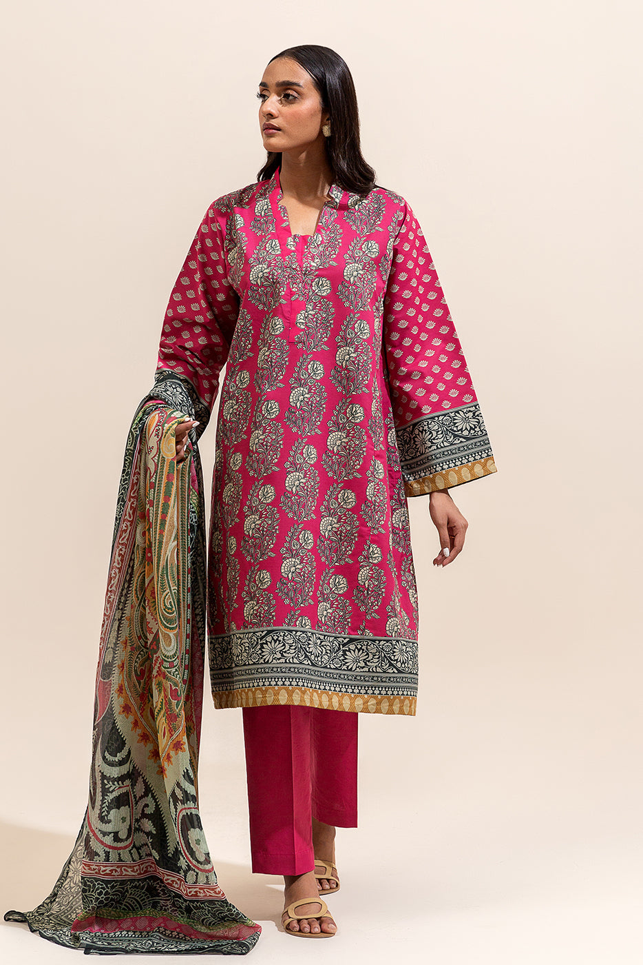 3 PIECE PRINTED LAWN SUIT-CERISE MESH ( UNSTITCHED)