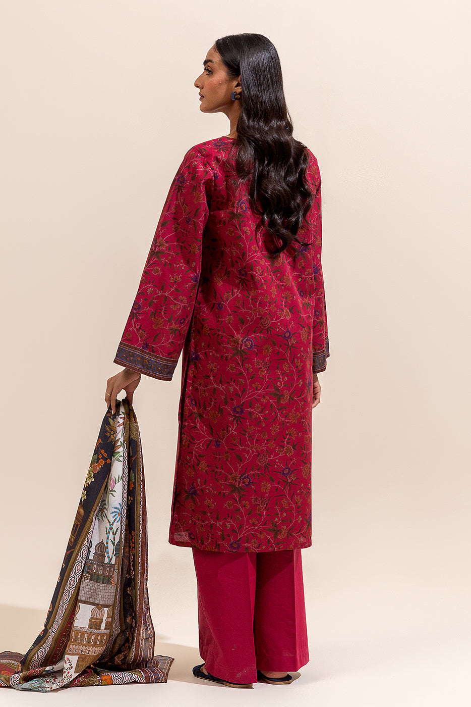 3 PIECE PRINTED LAWN SUIT-GARNET SMOKE ( UNSTITCHED)