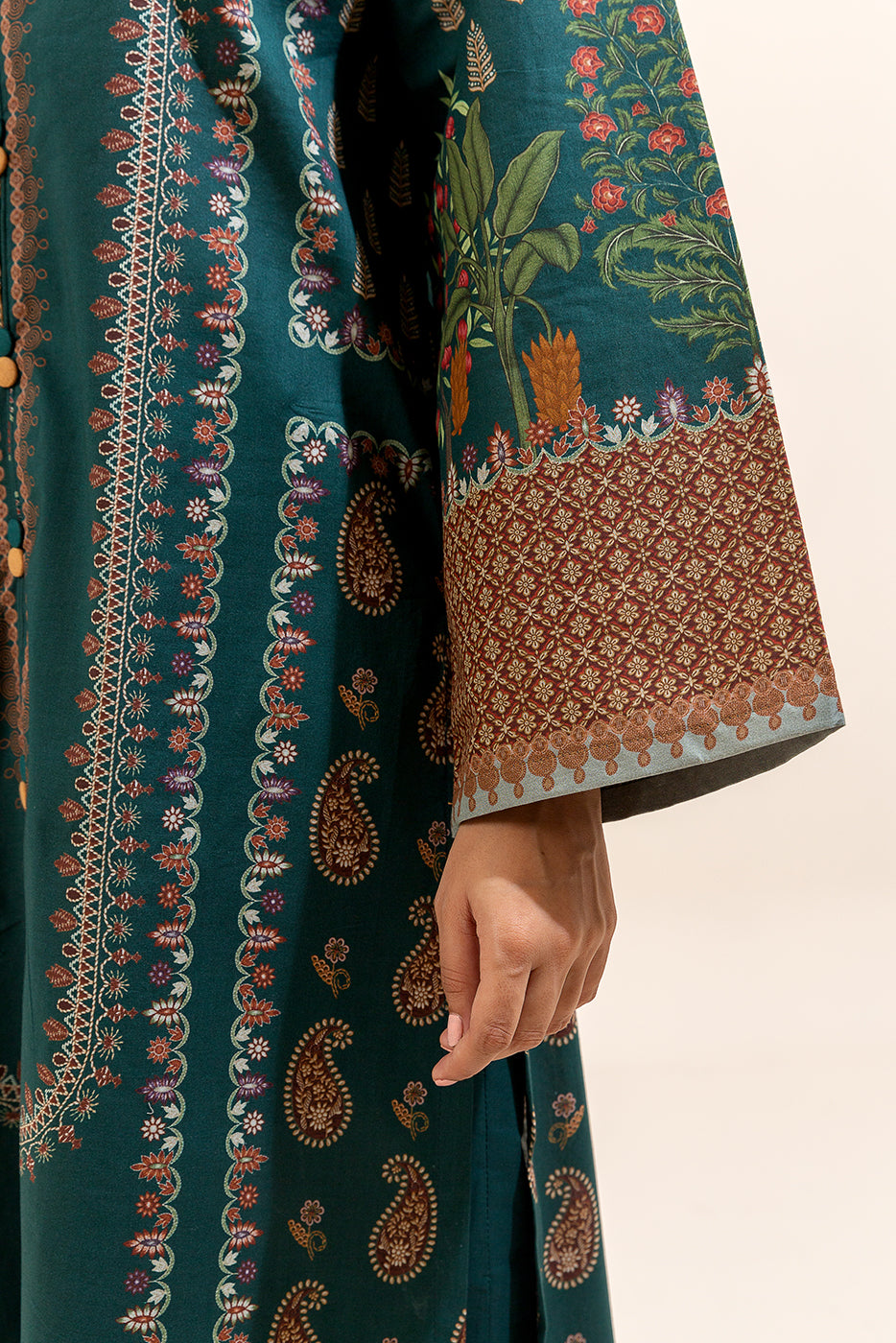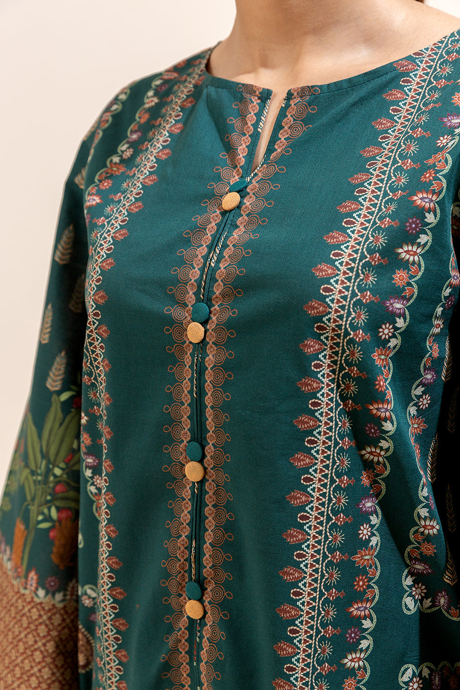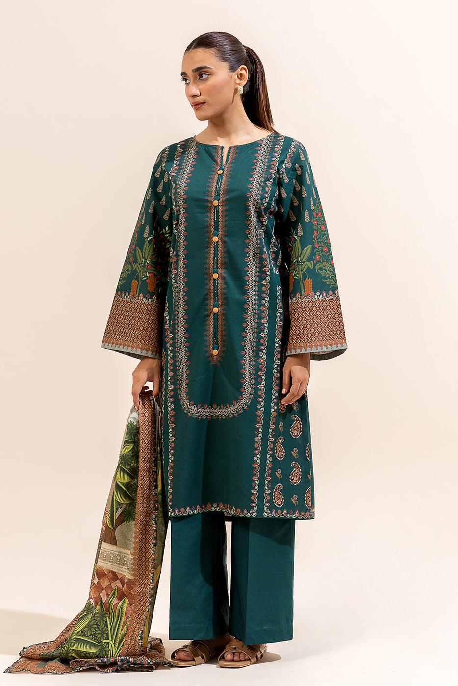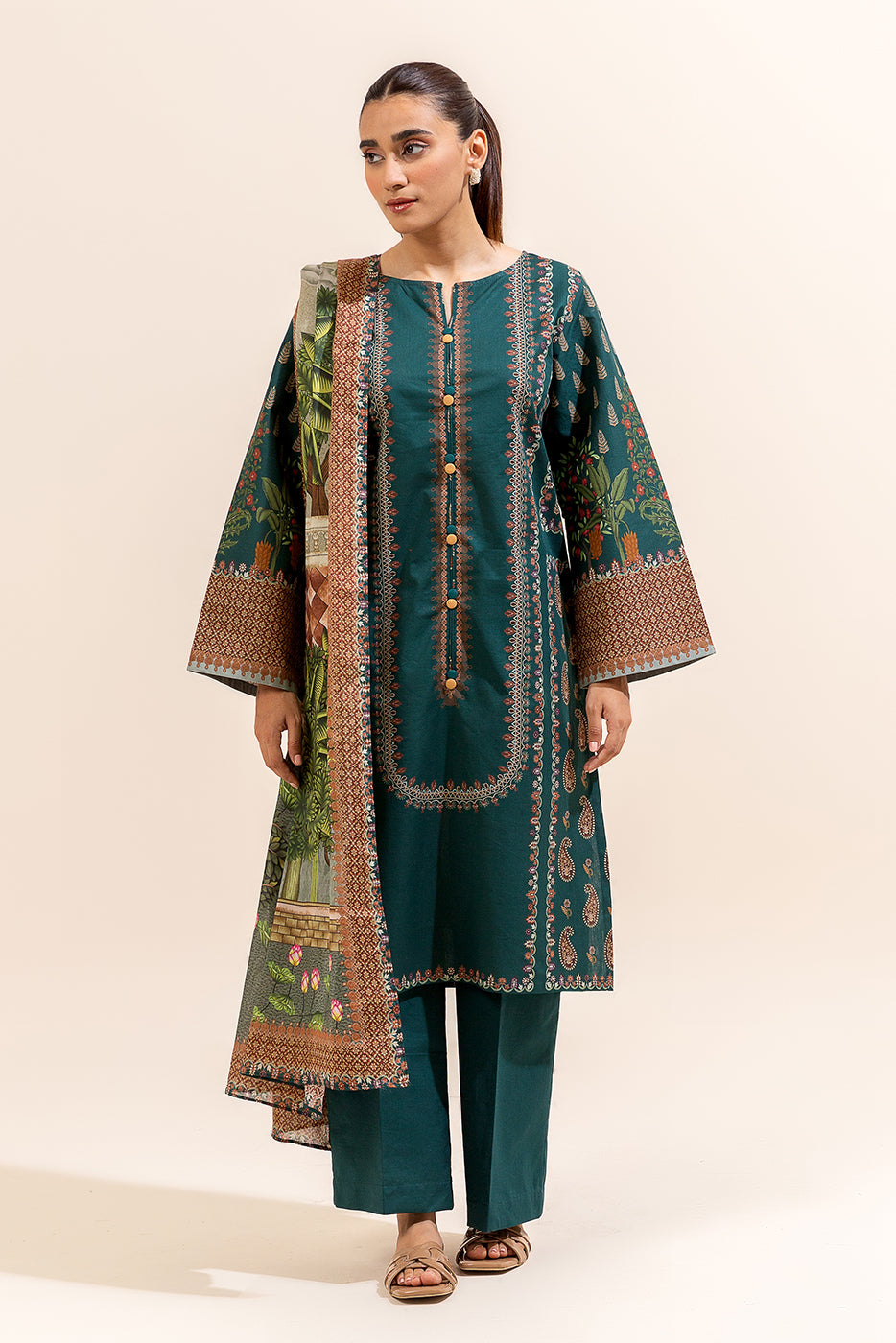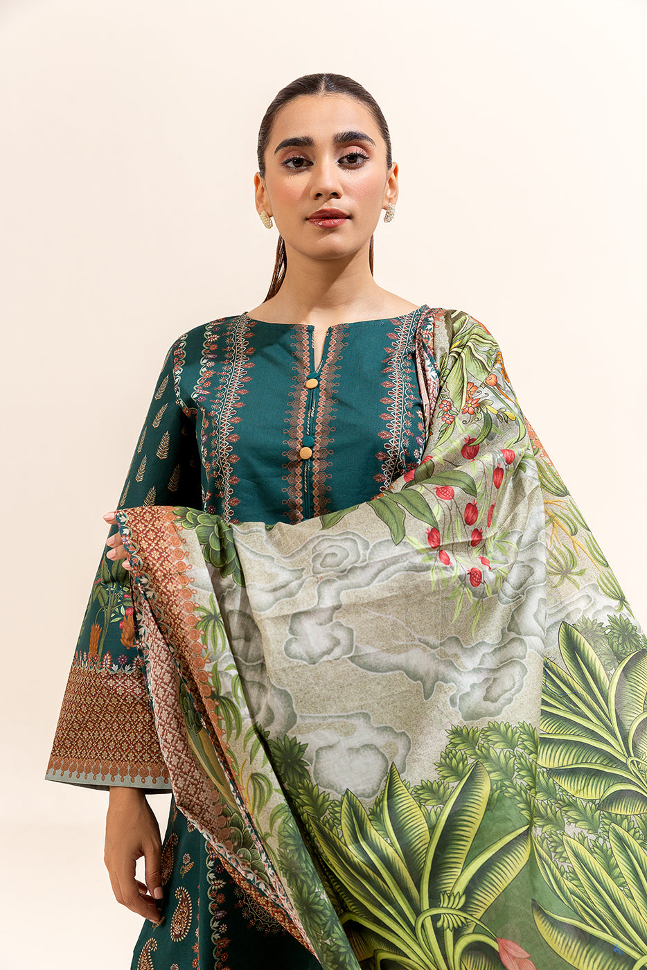 3 PIECE PRINTED LAWN SUIT-TEAL TROPICA (UNSTITCHED)